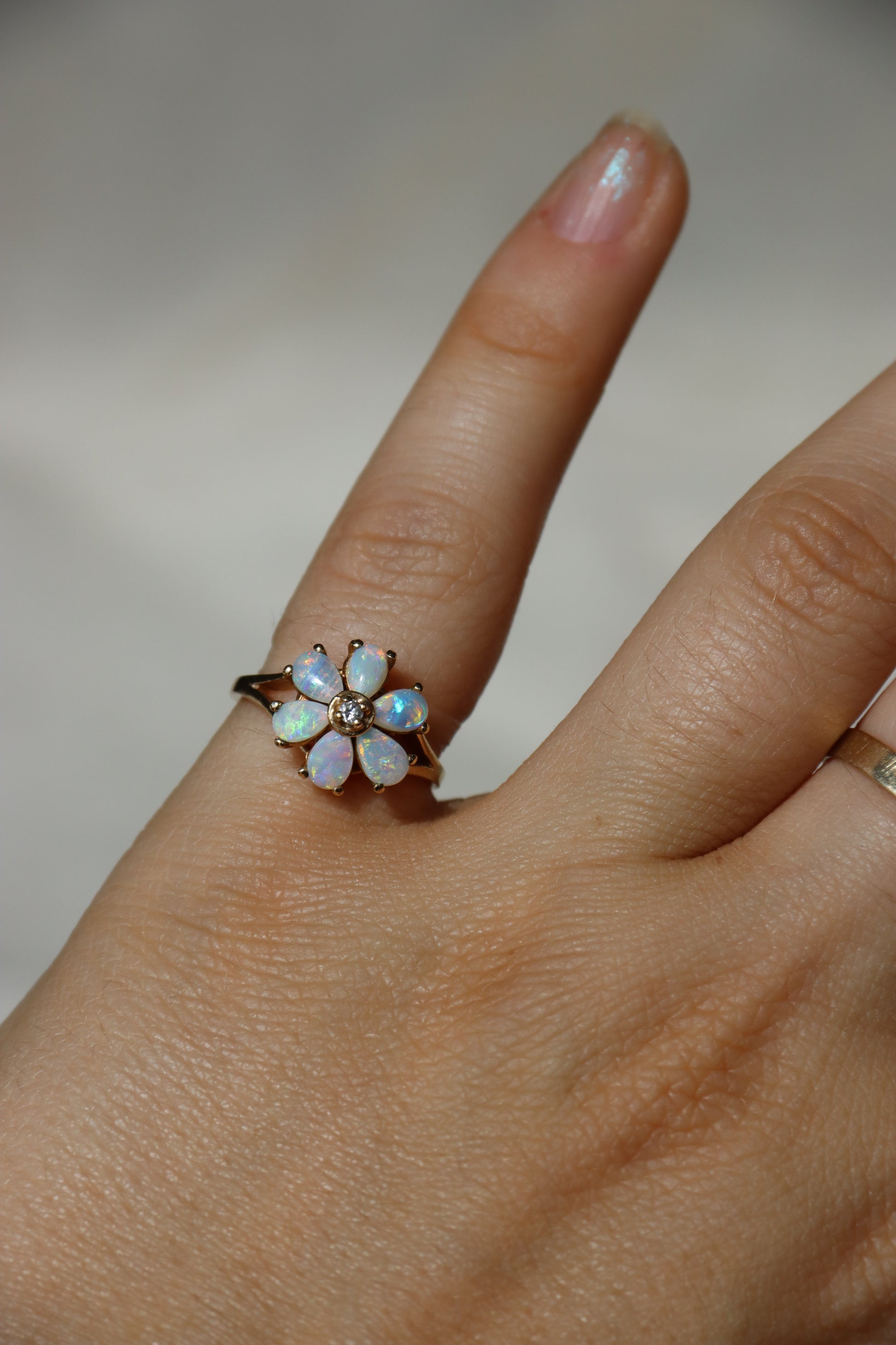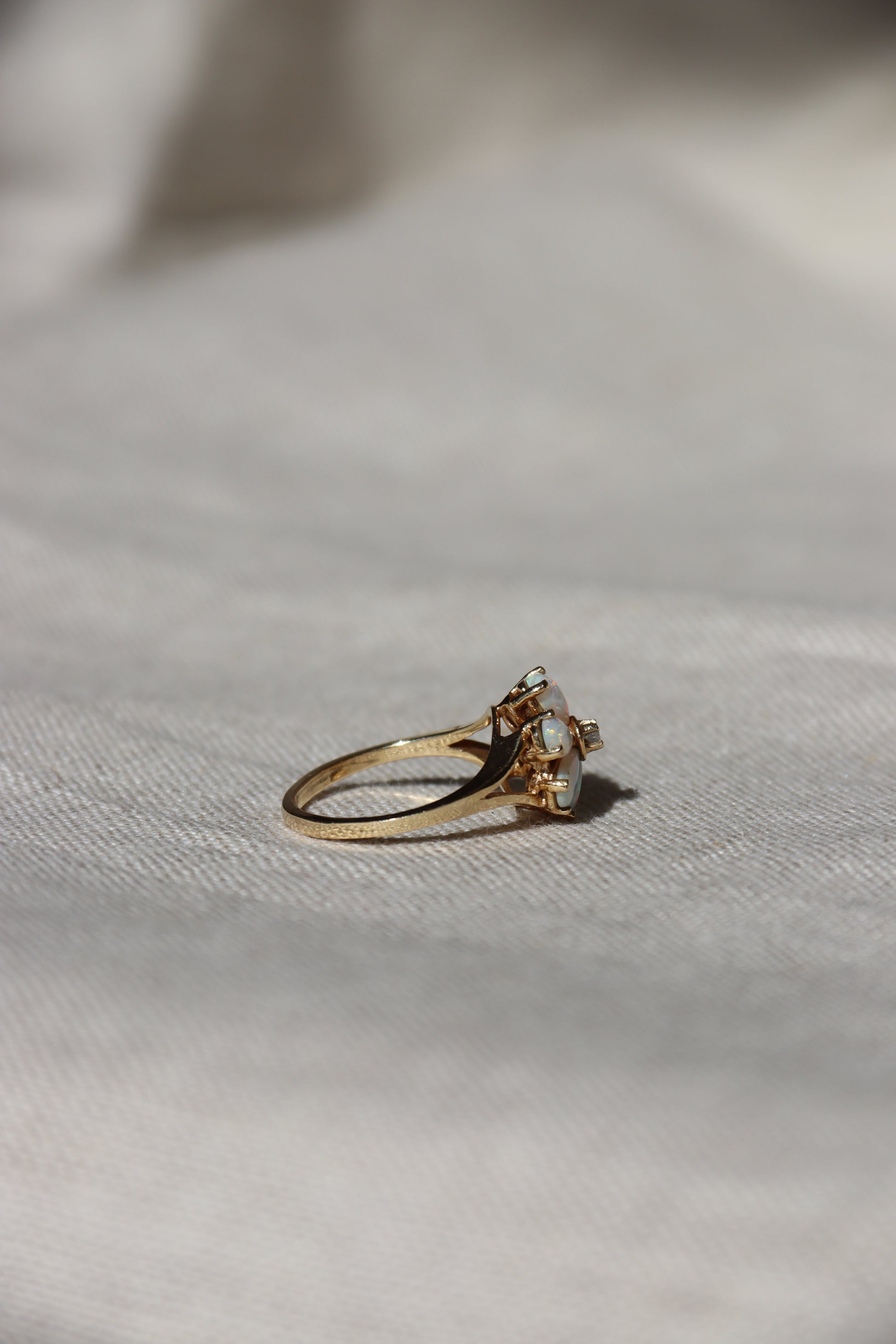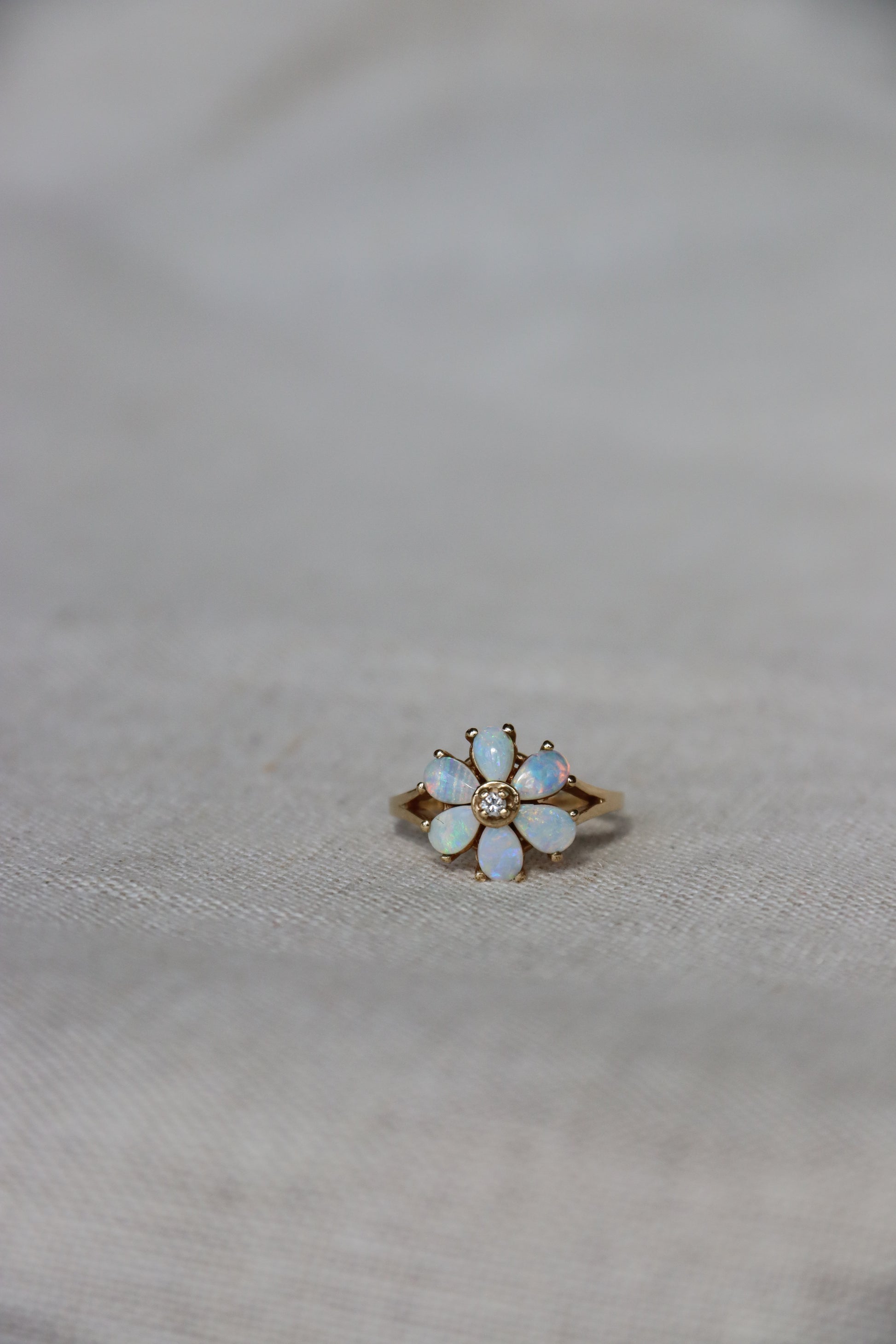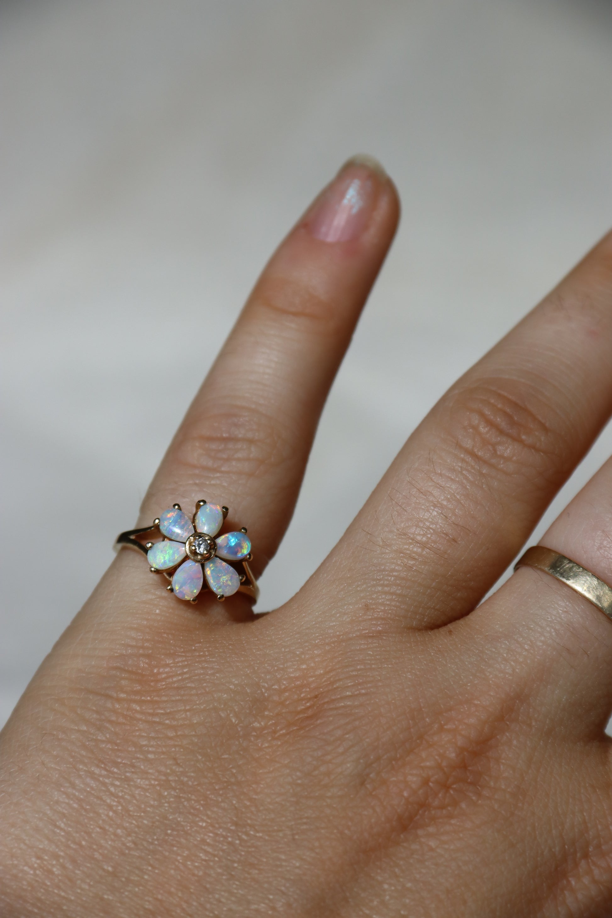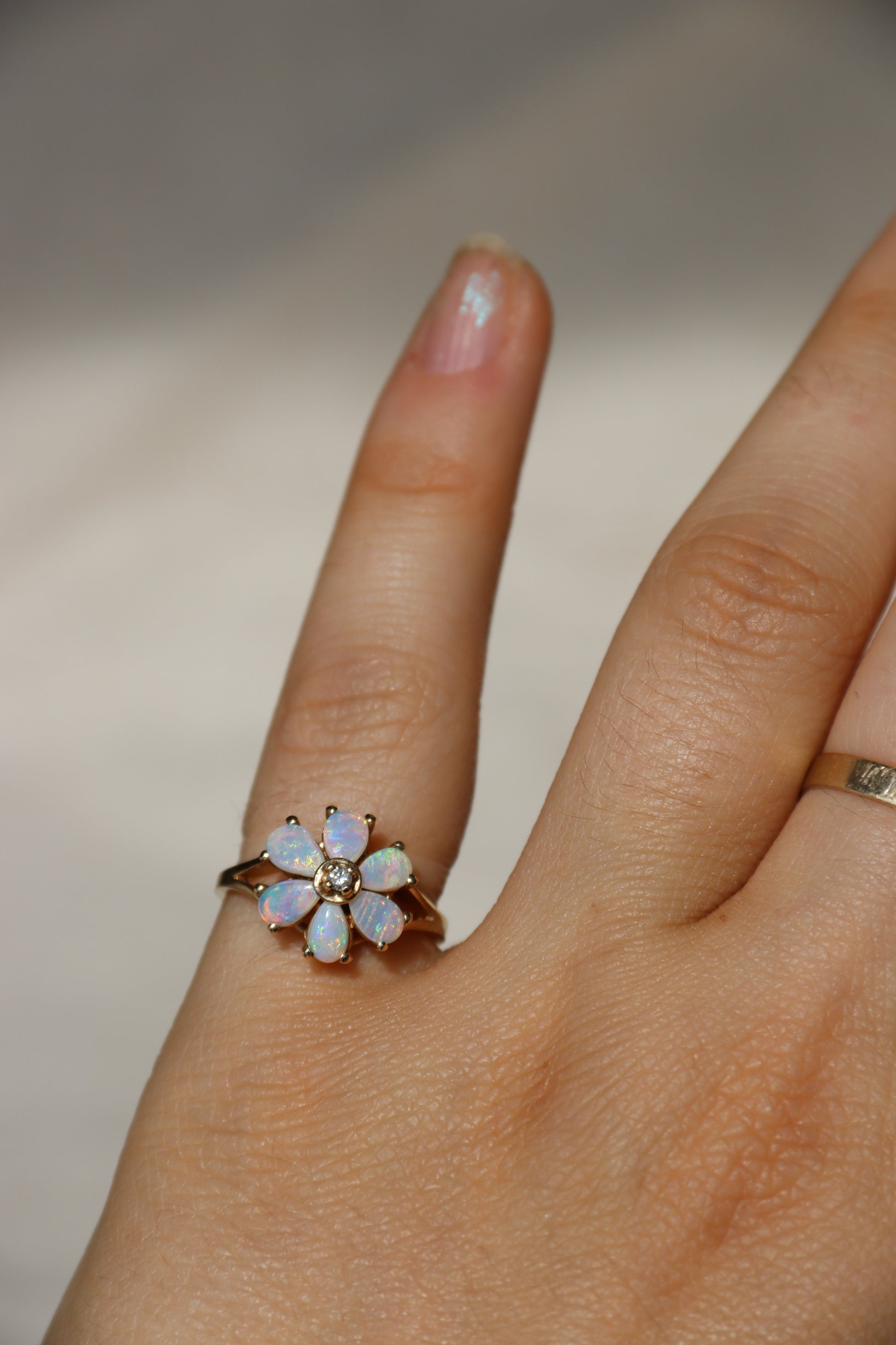 | Materials: | 10K Yellow Gold, Pear Cabochon Opal, Round Brilliant Cut Diamond |