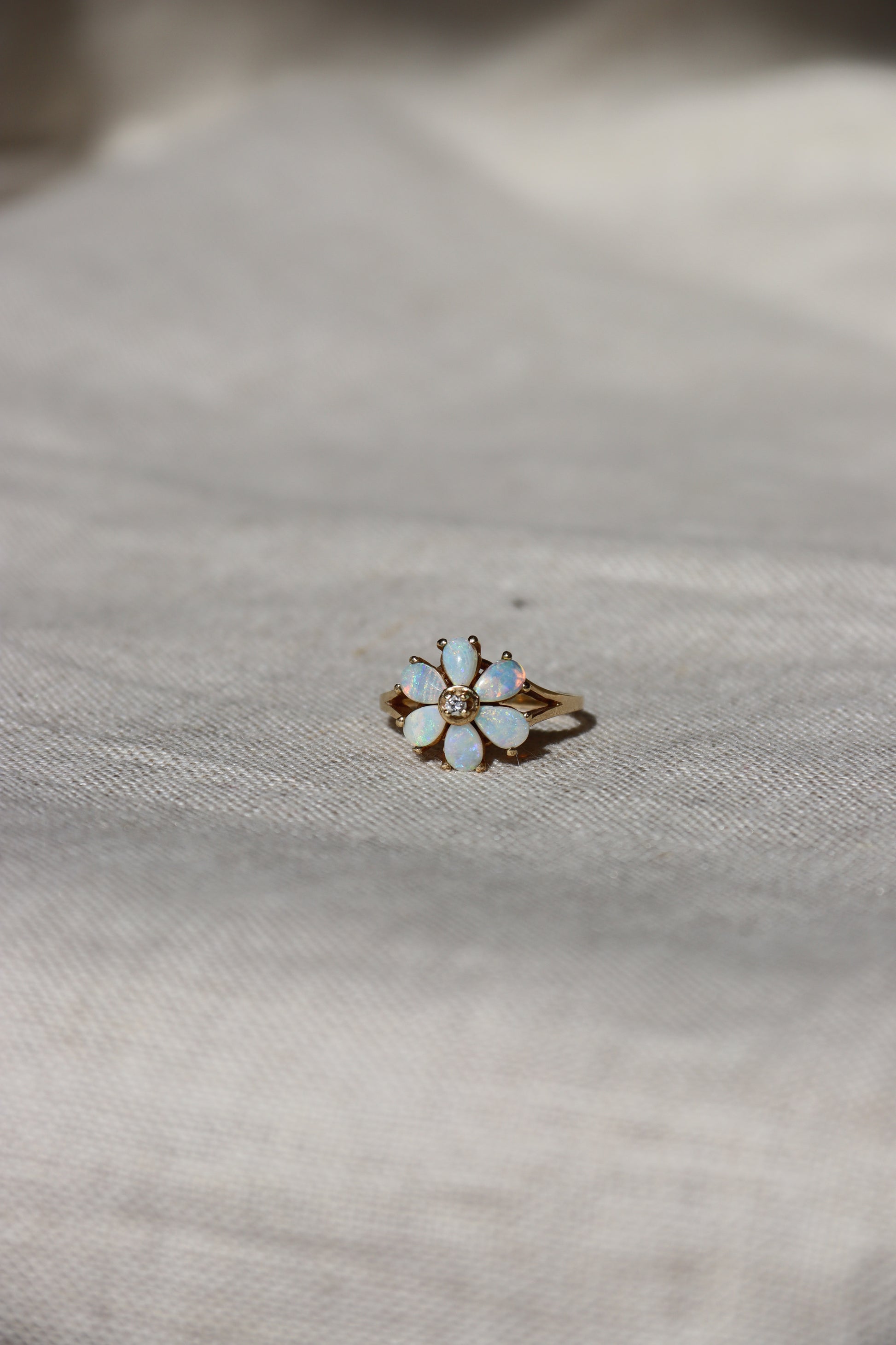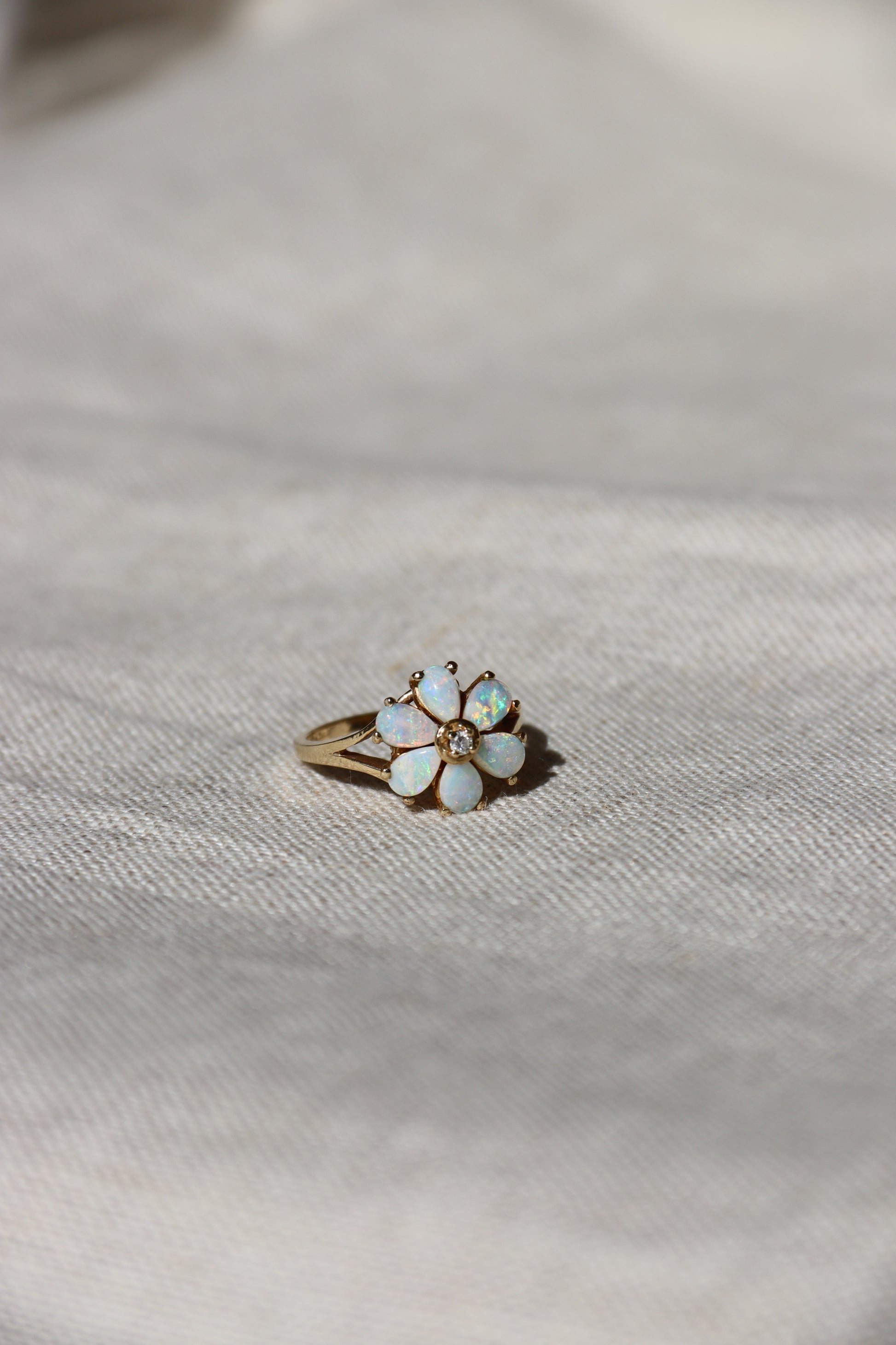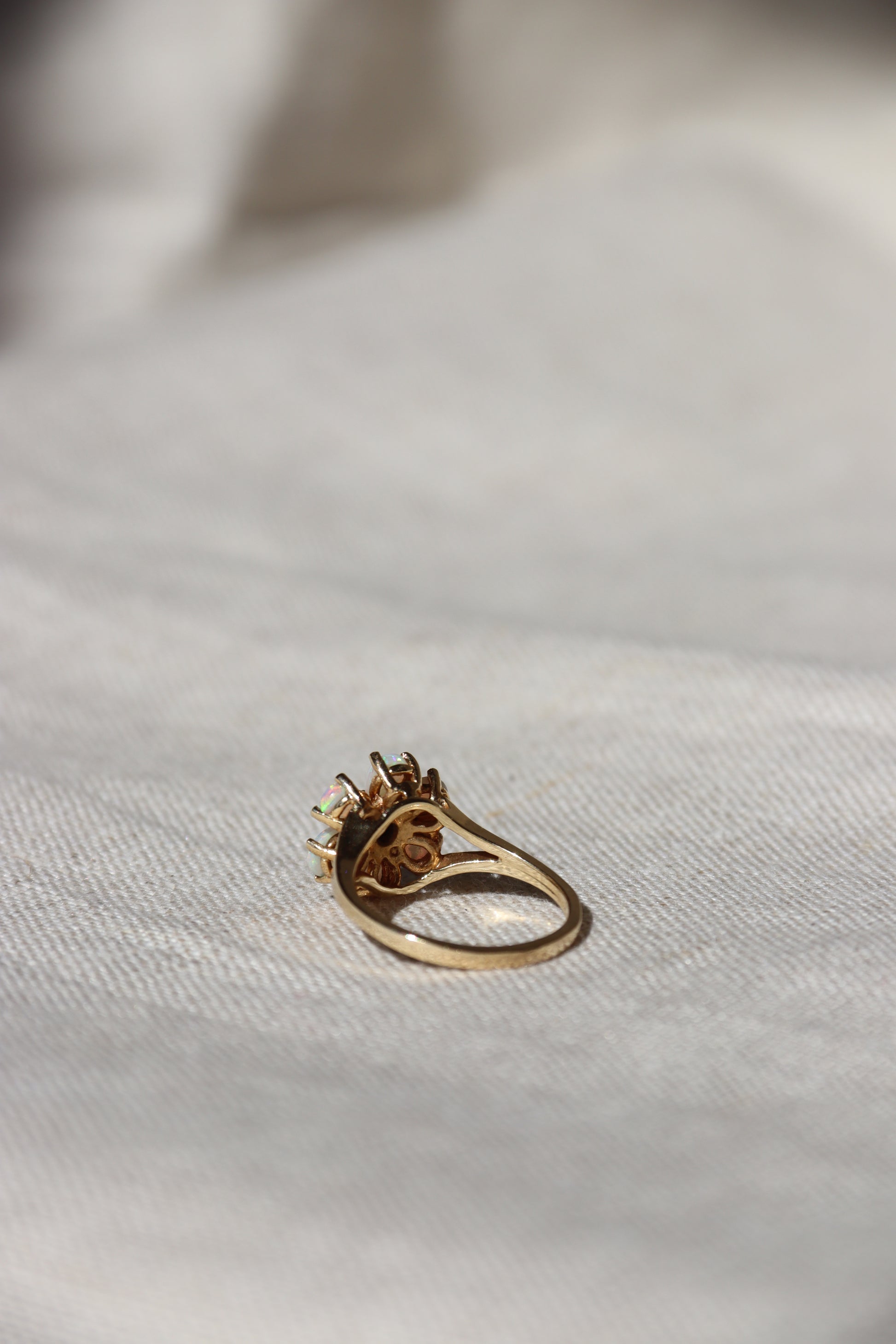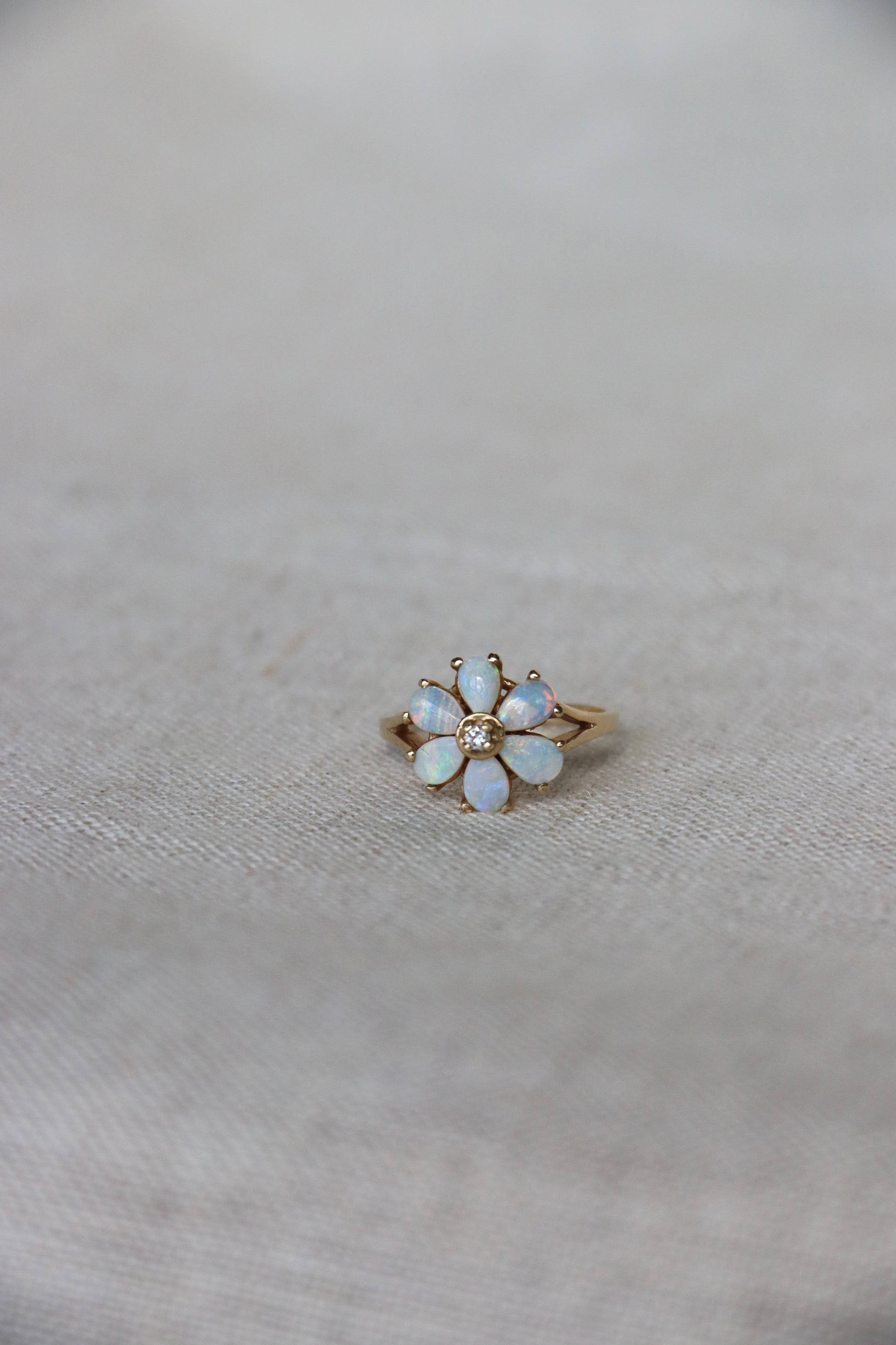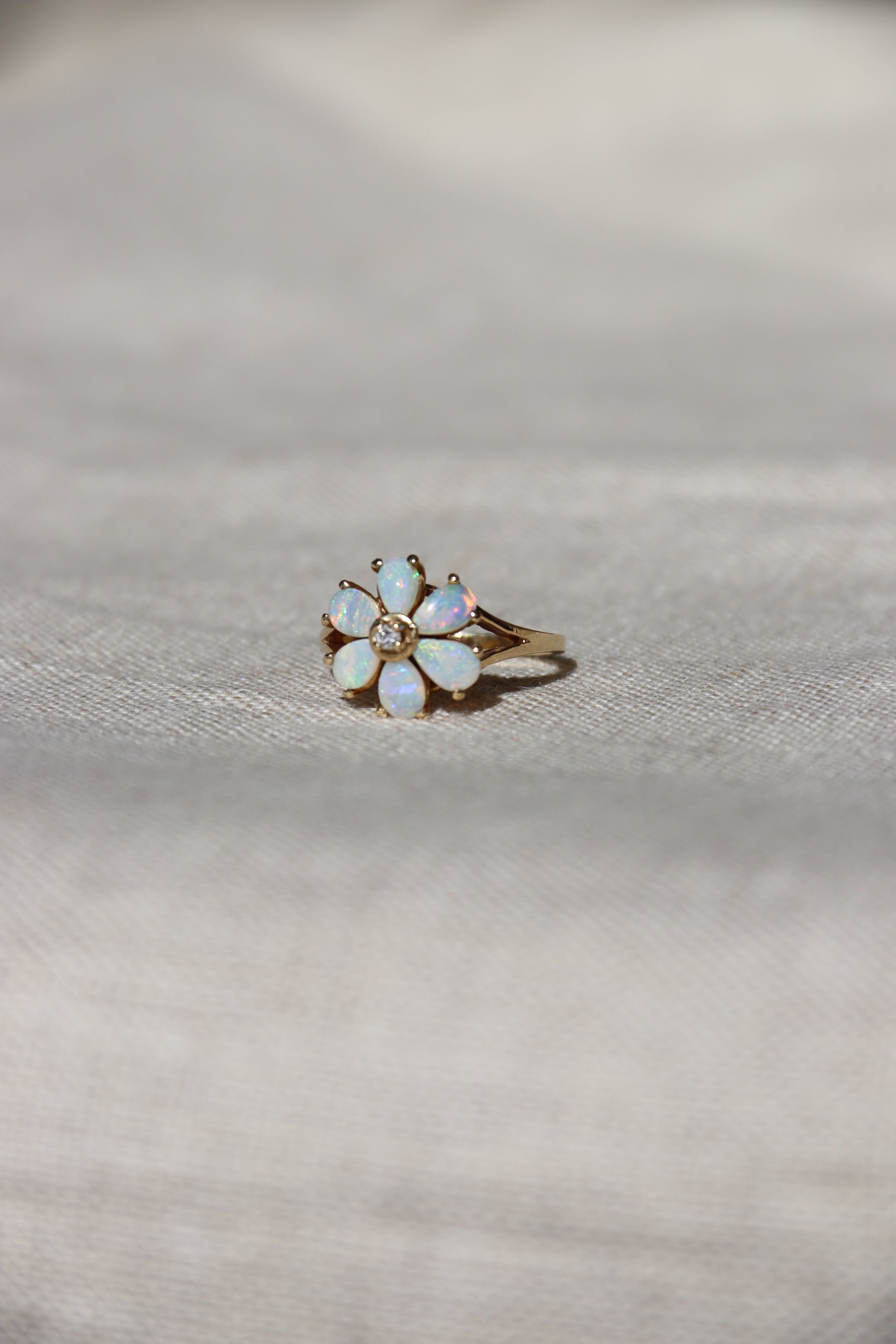 | Materials: | 10K Yellow Gold, Pear Cabochon Opal, Round Brilliant Cut Diamond |
