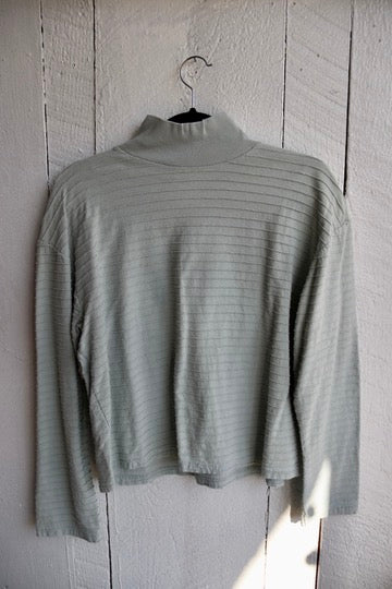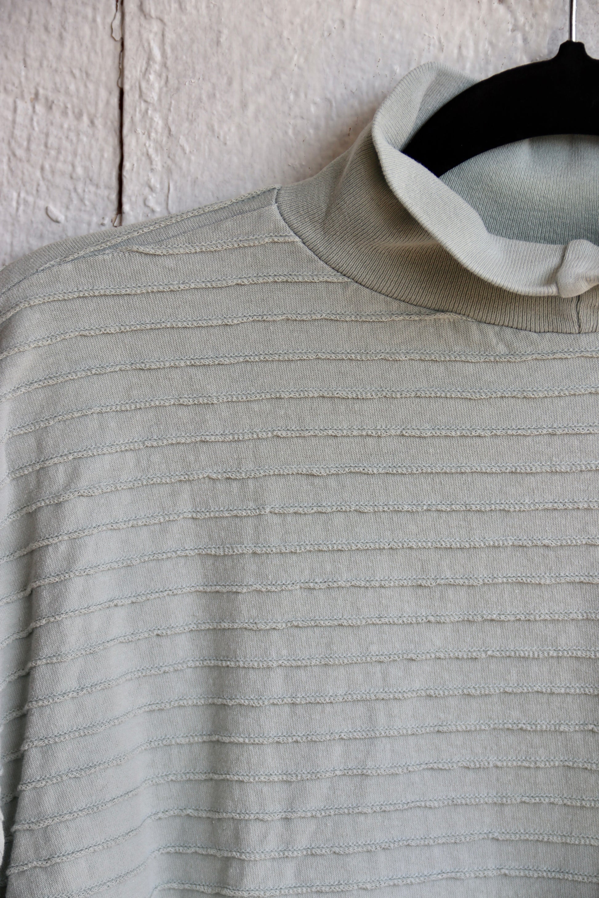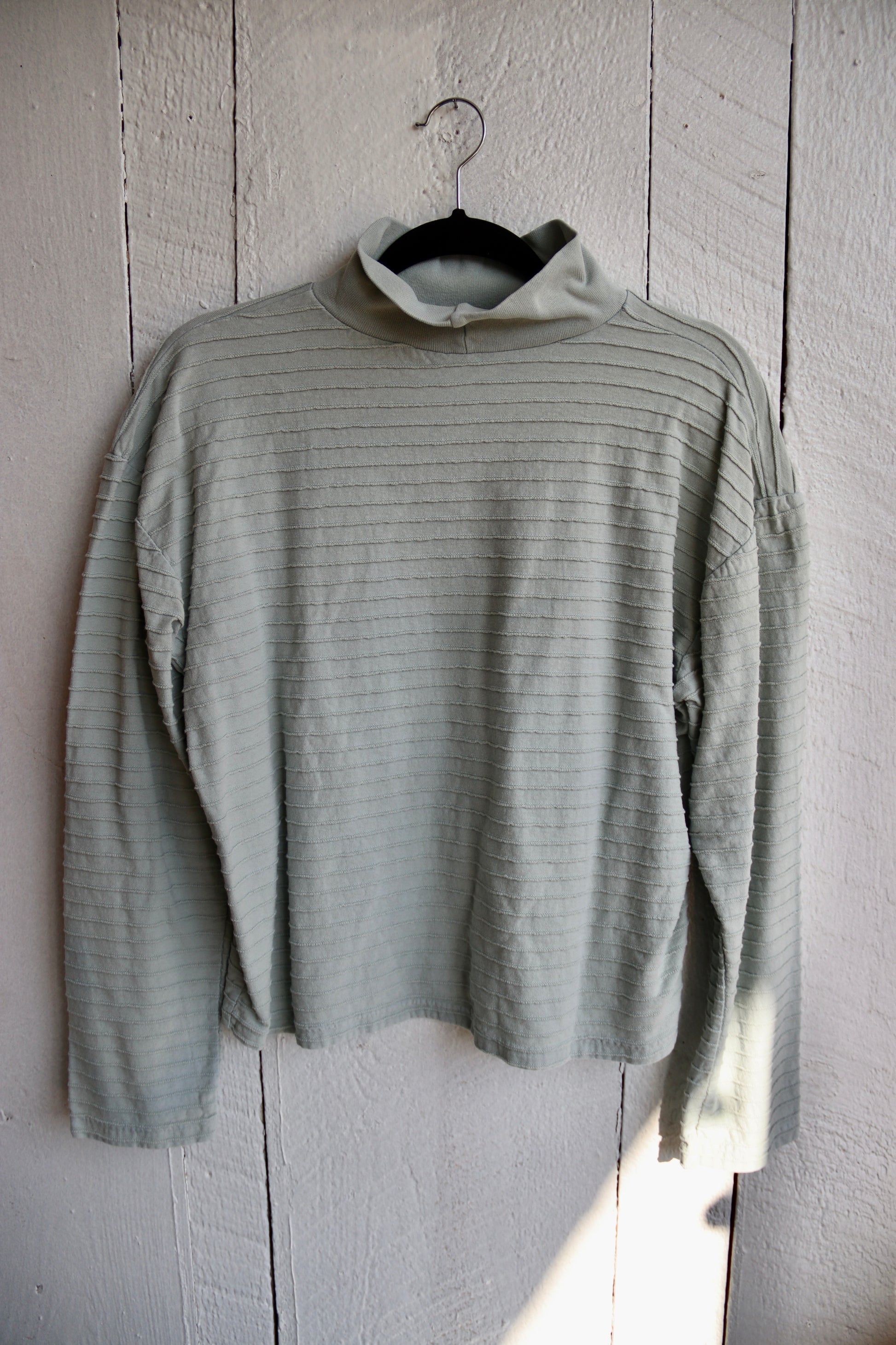 Vintage Light Blue Ribbed Mock Neck Long Sleeve Tshirt