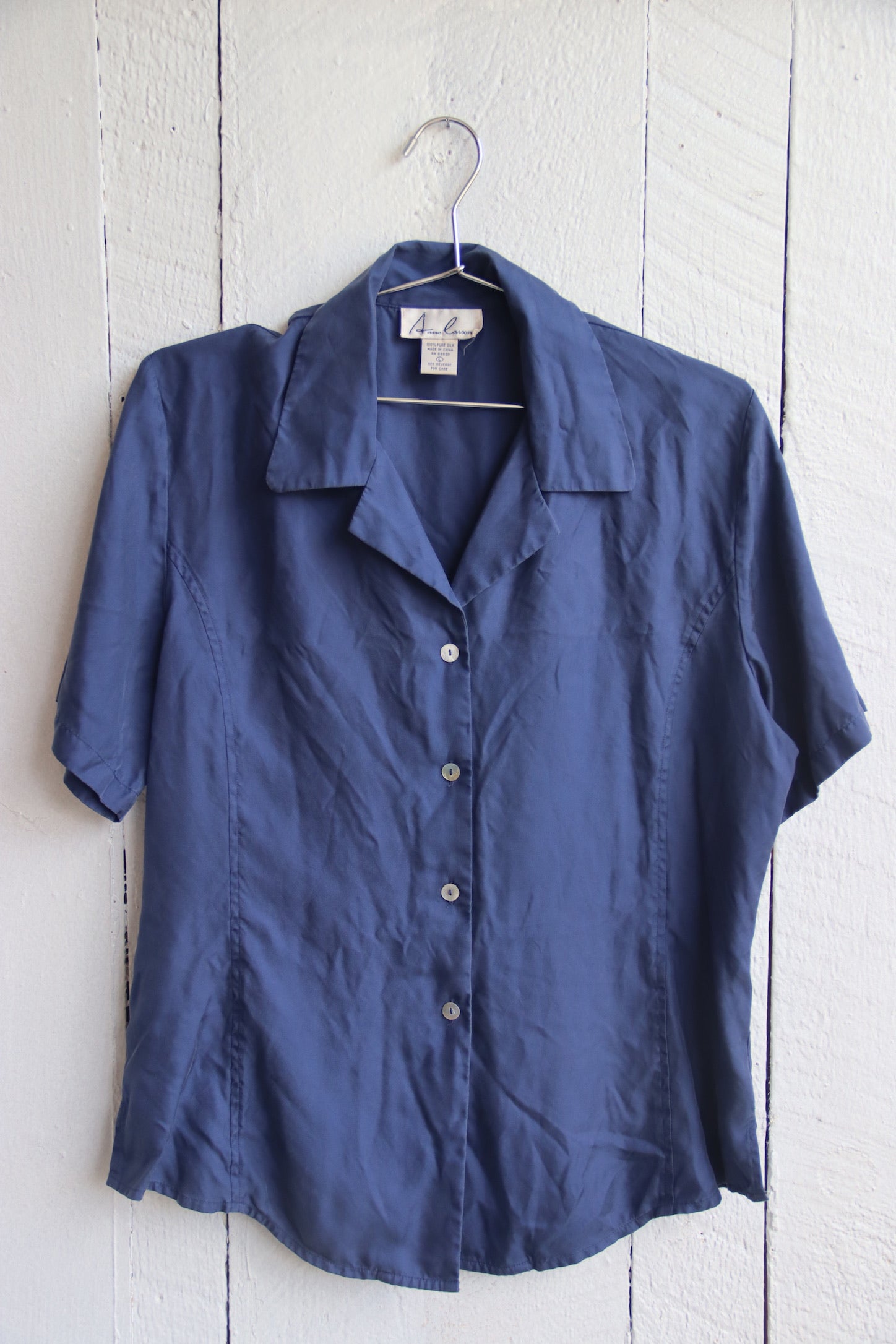 Anne Larson Blue Silk Top