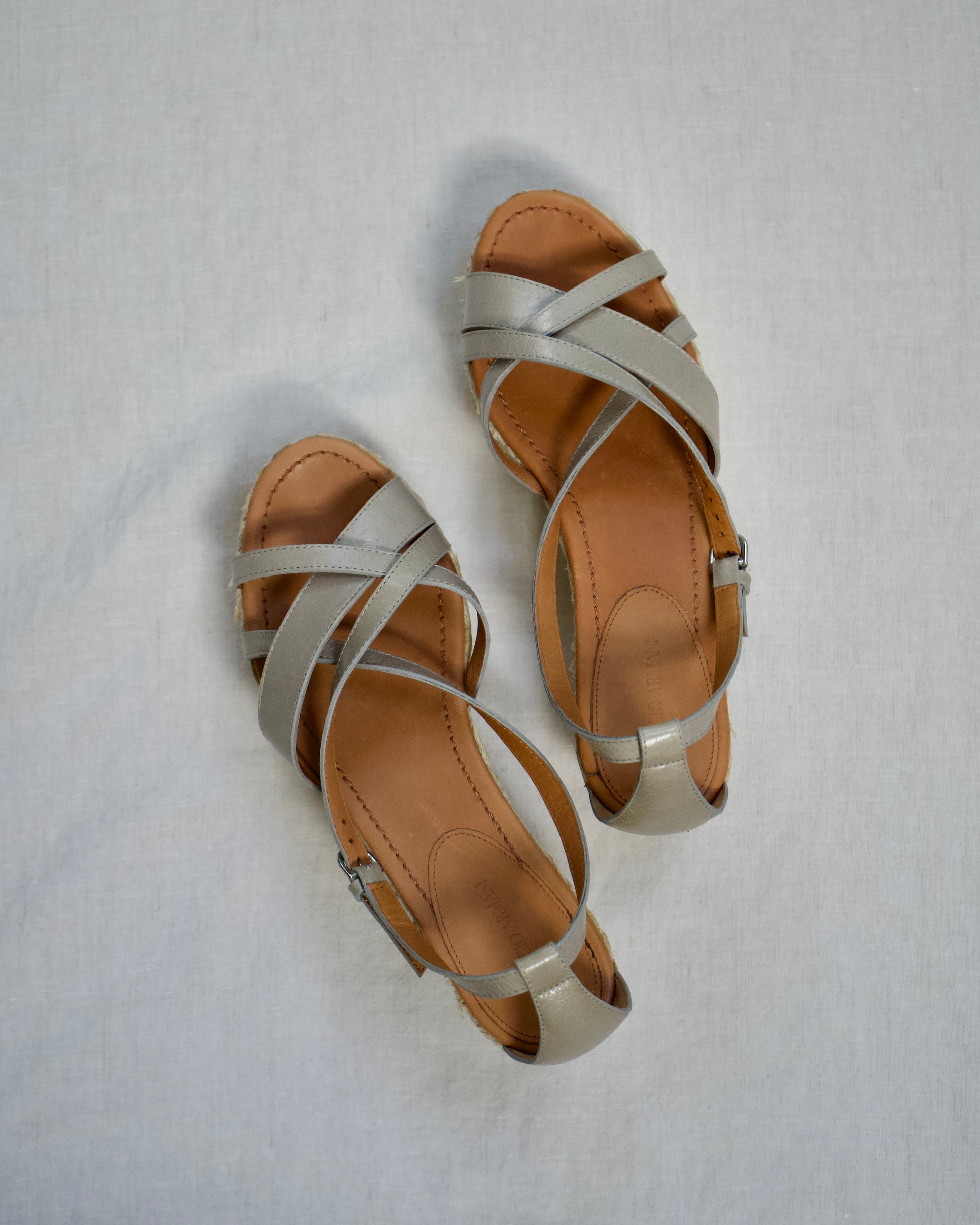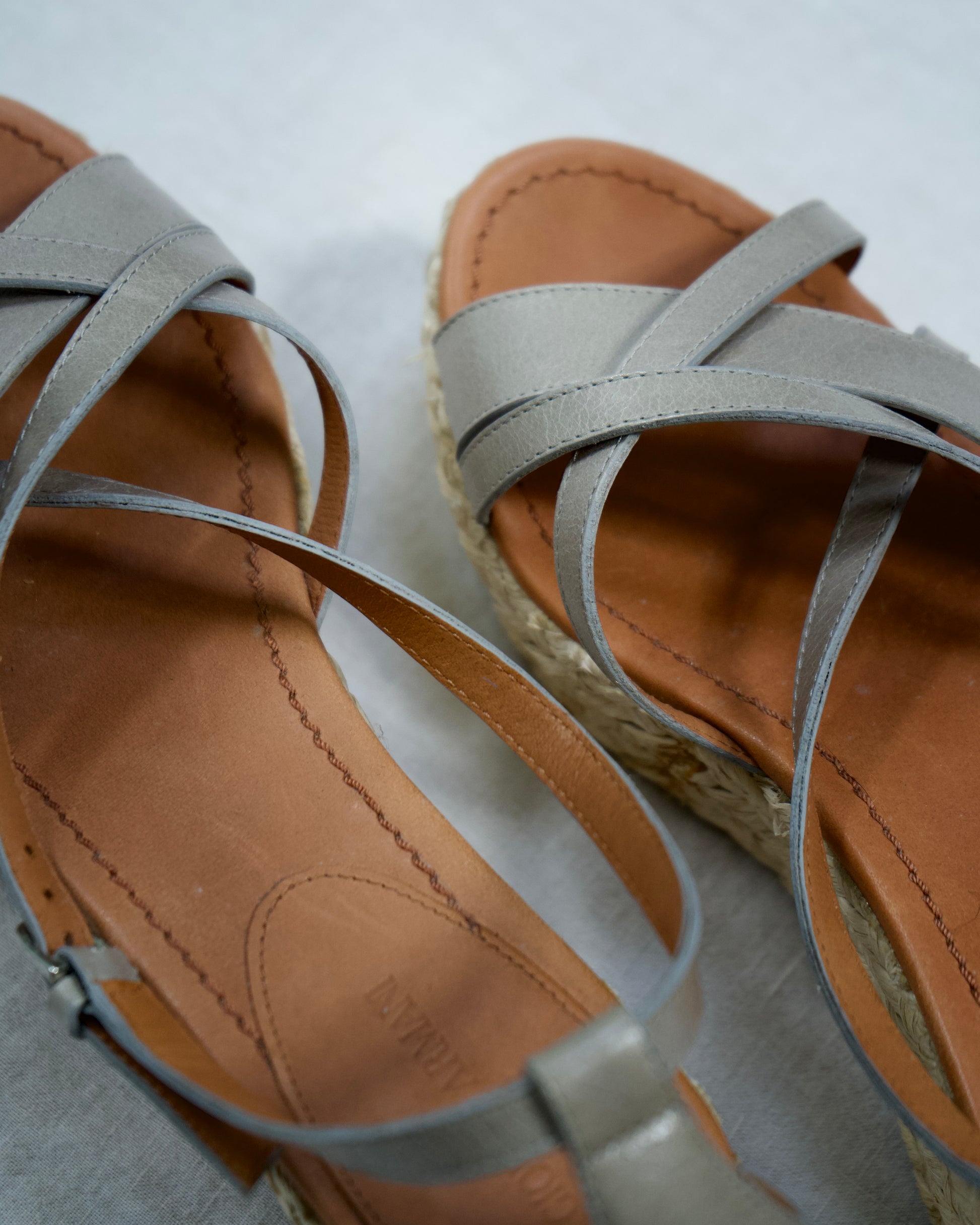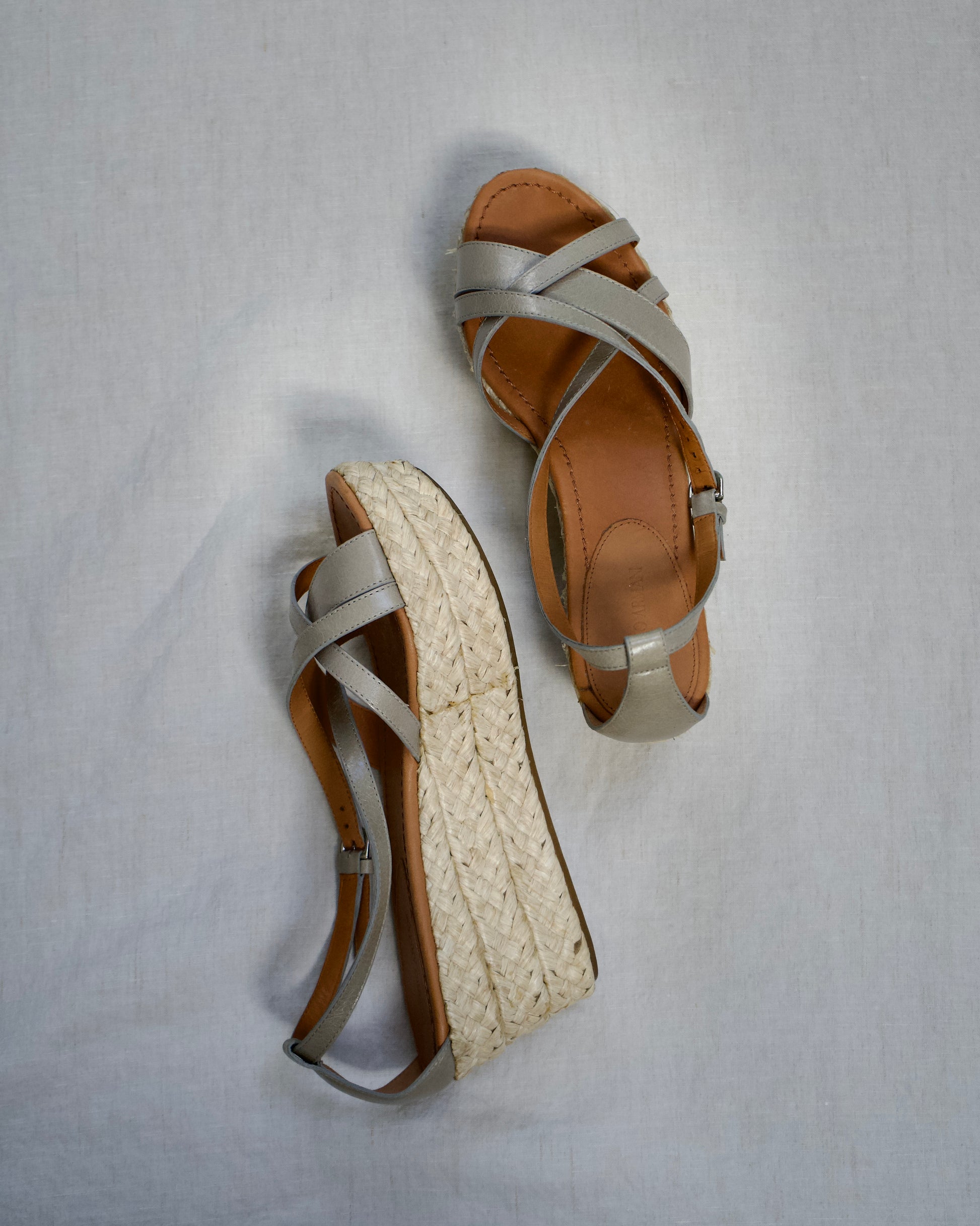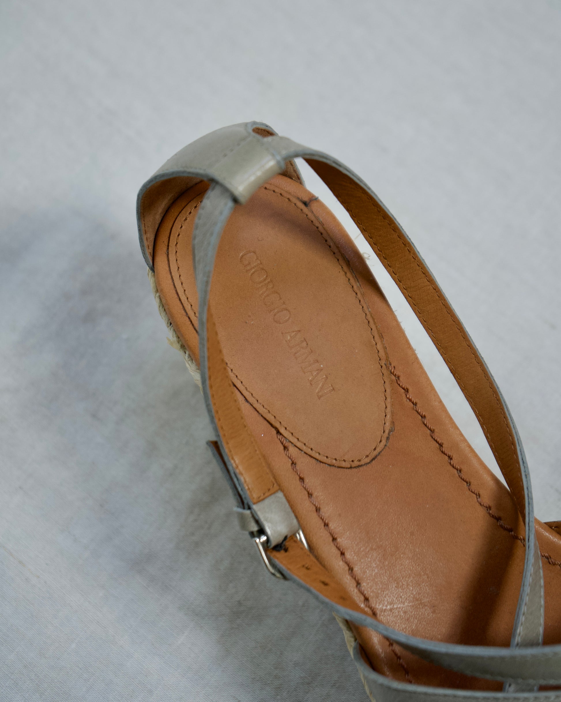 Grey platform wedge heels by Armani. Leather upper. Size 8.5