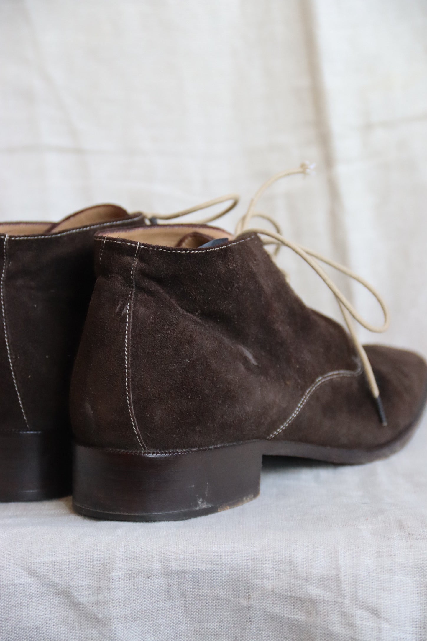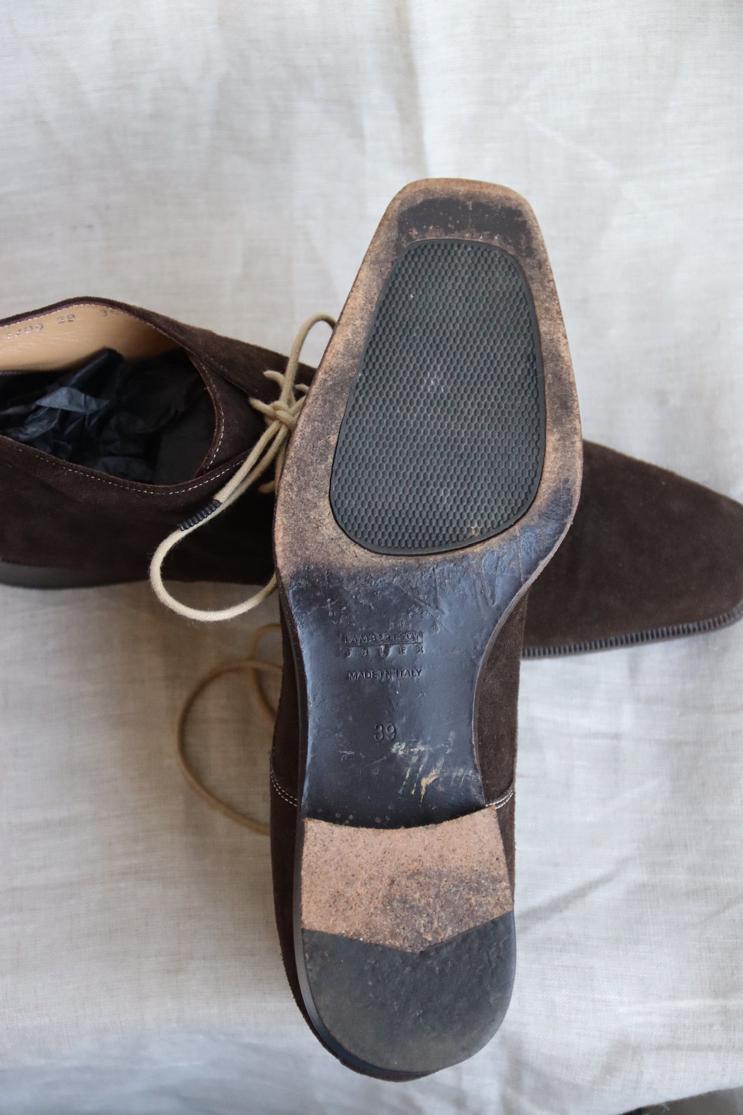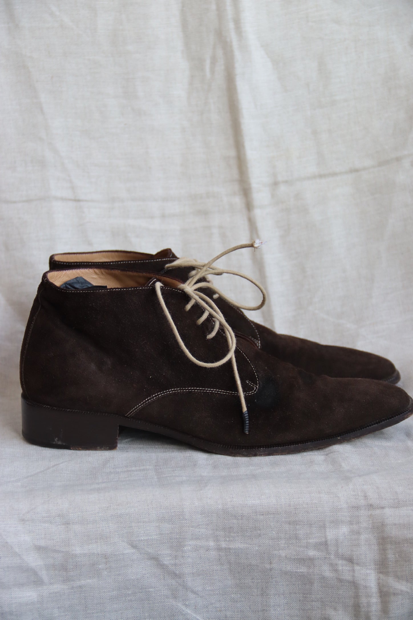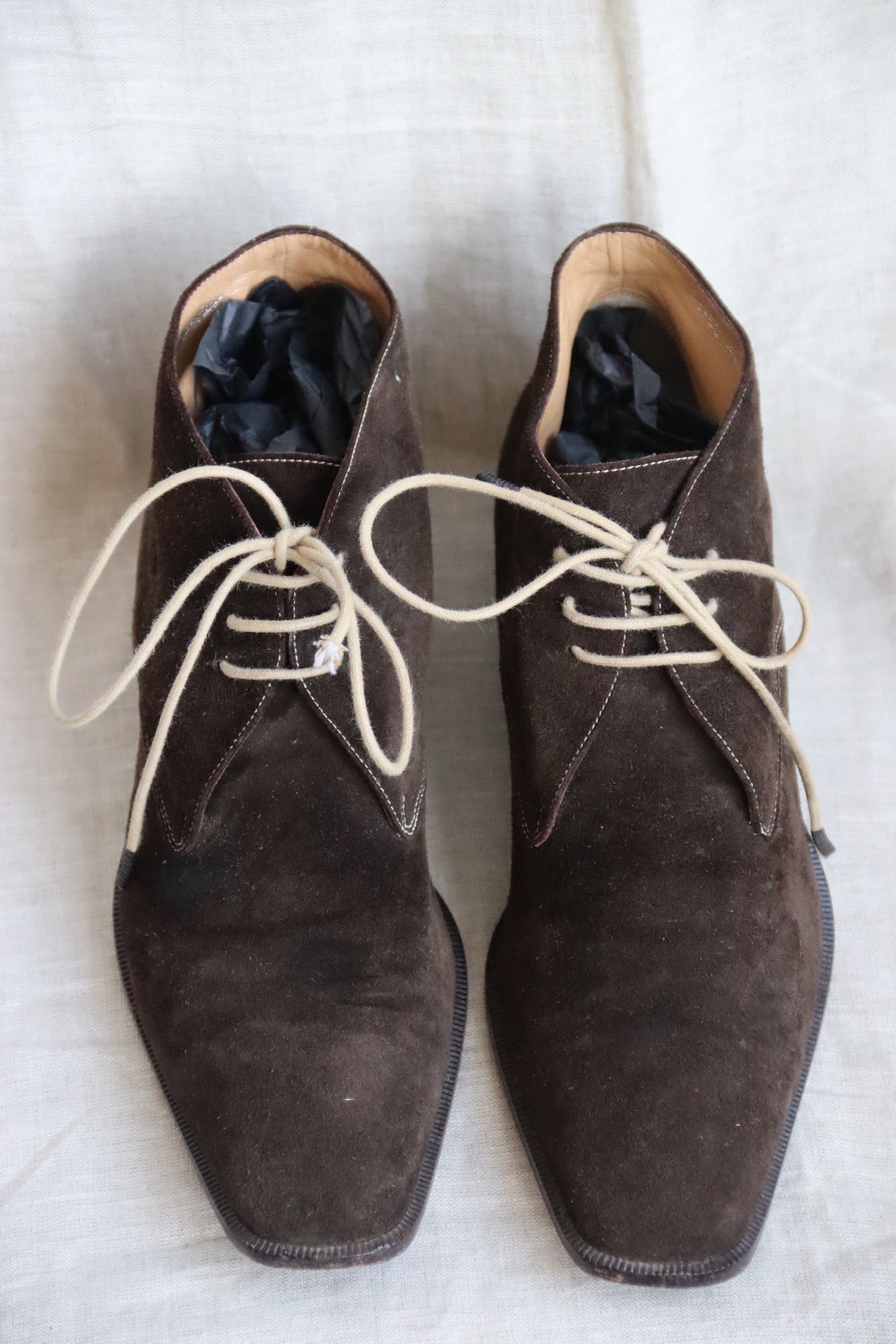 Lambertson Truex Brown Suede Ankle Lace-Up Boots with Square-Toes