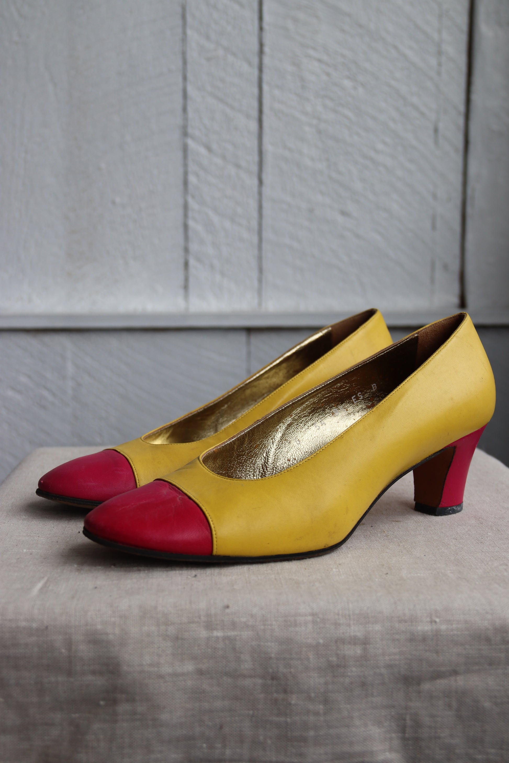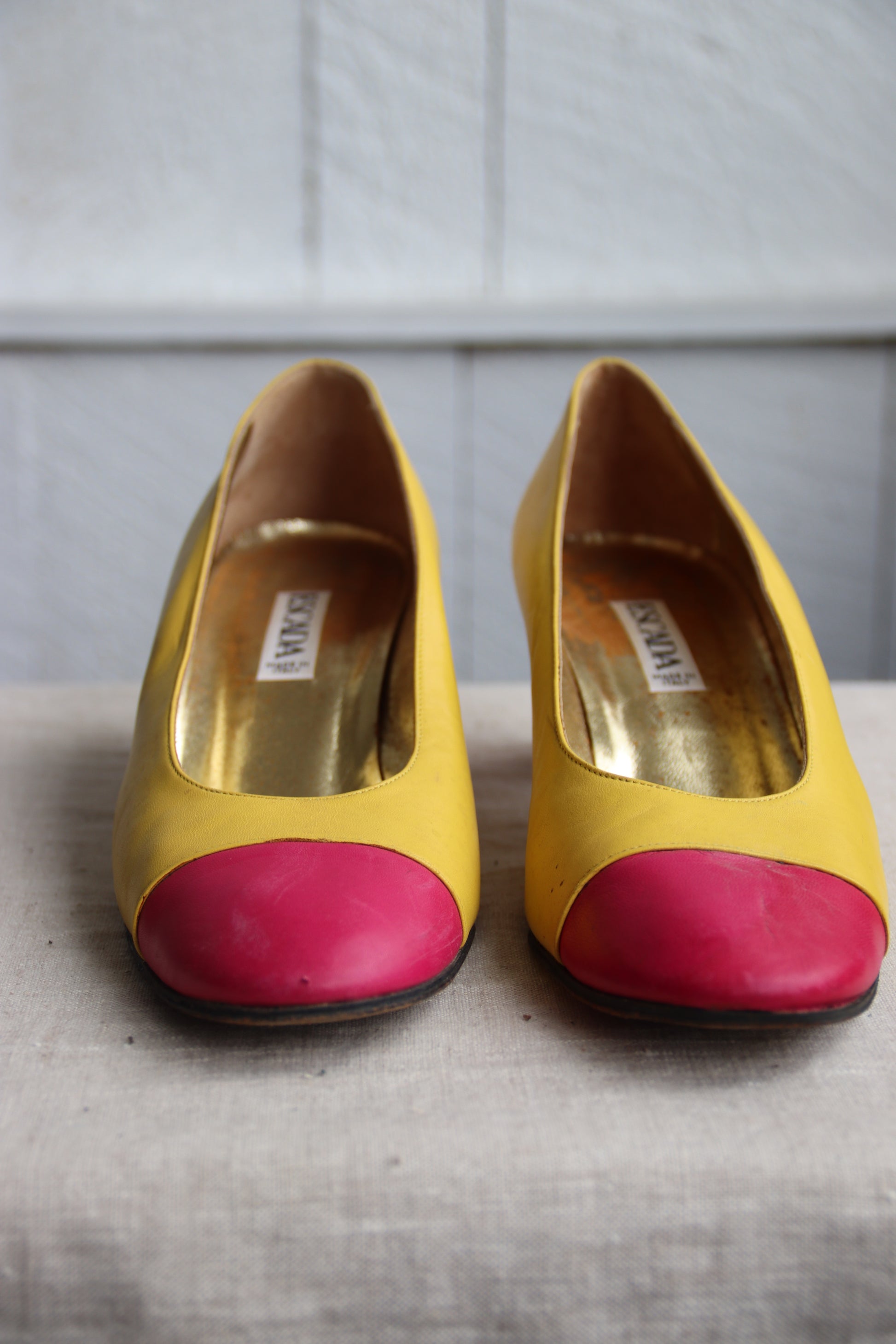 Escada bright yellow and pink heels