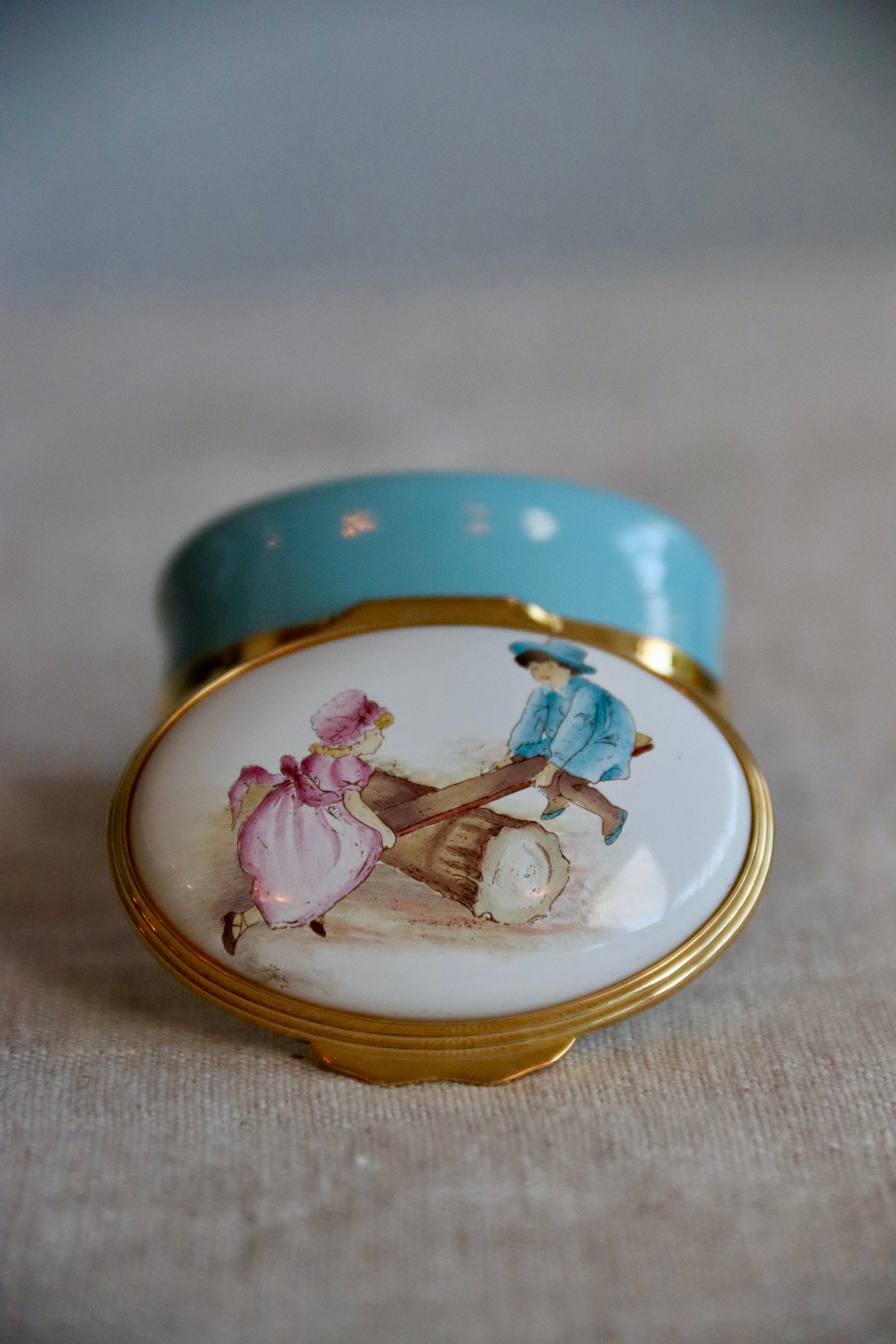 Halcyon Days Boy and Girl on See Saw Enamel Box