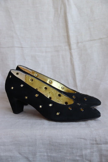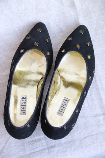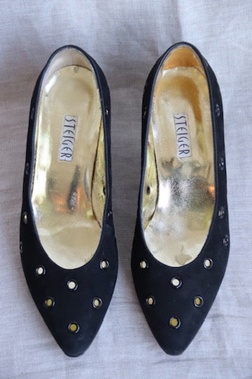 Walter Steiger Black Suede Pumps with Semi-Pointed Toes