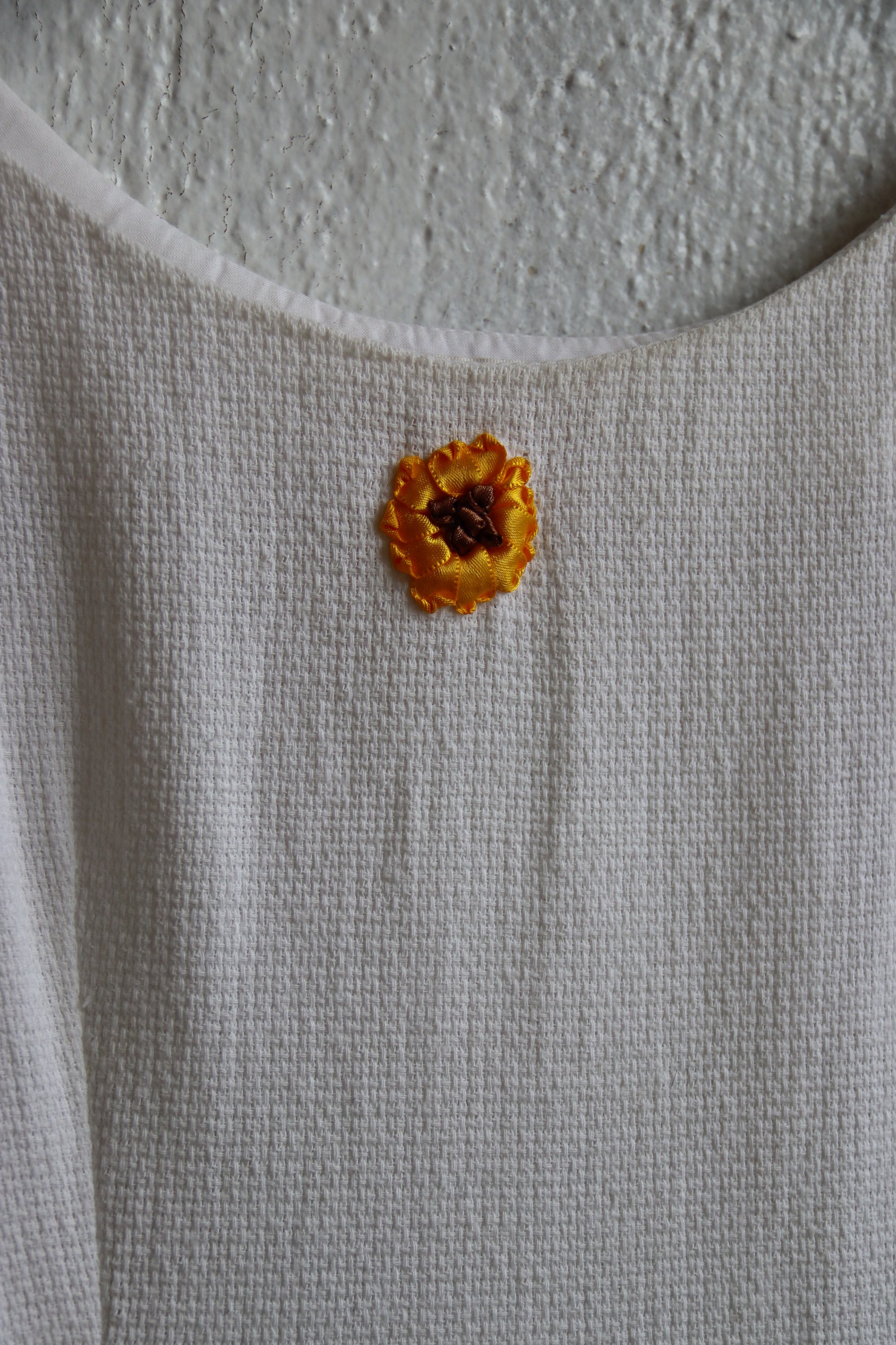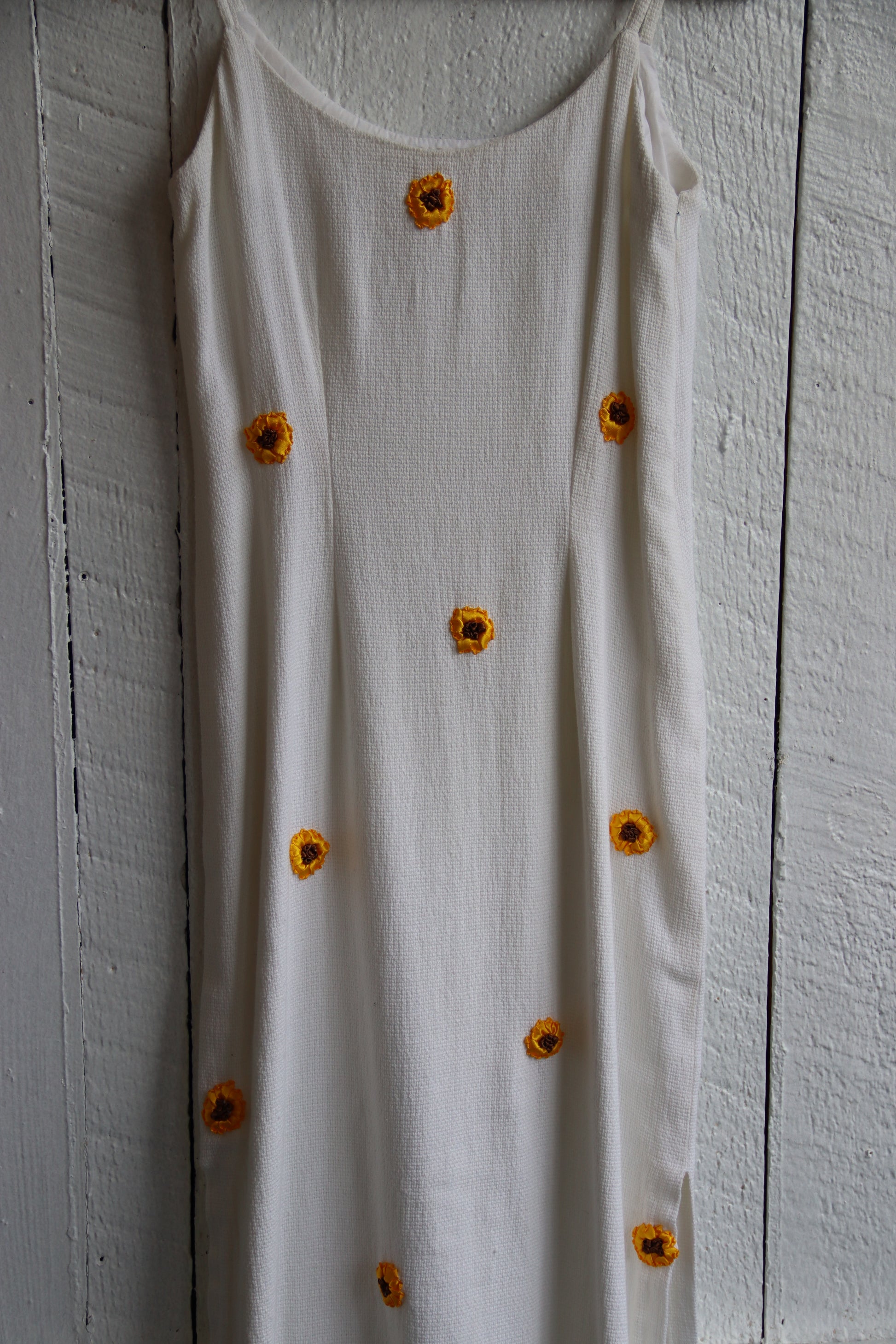 White Linen Dress with Sunflowers