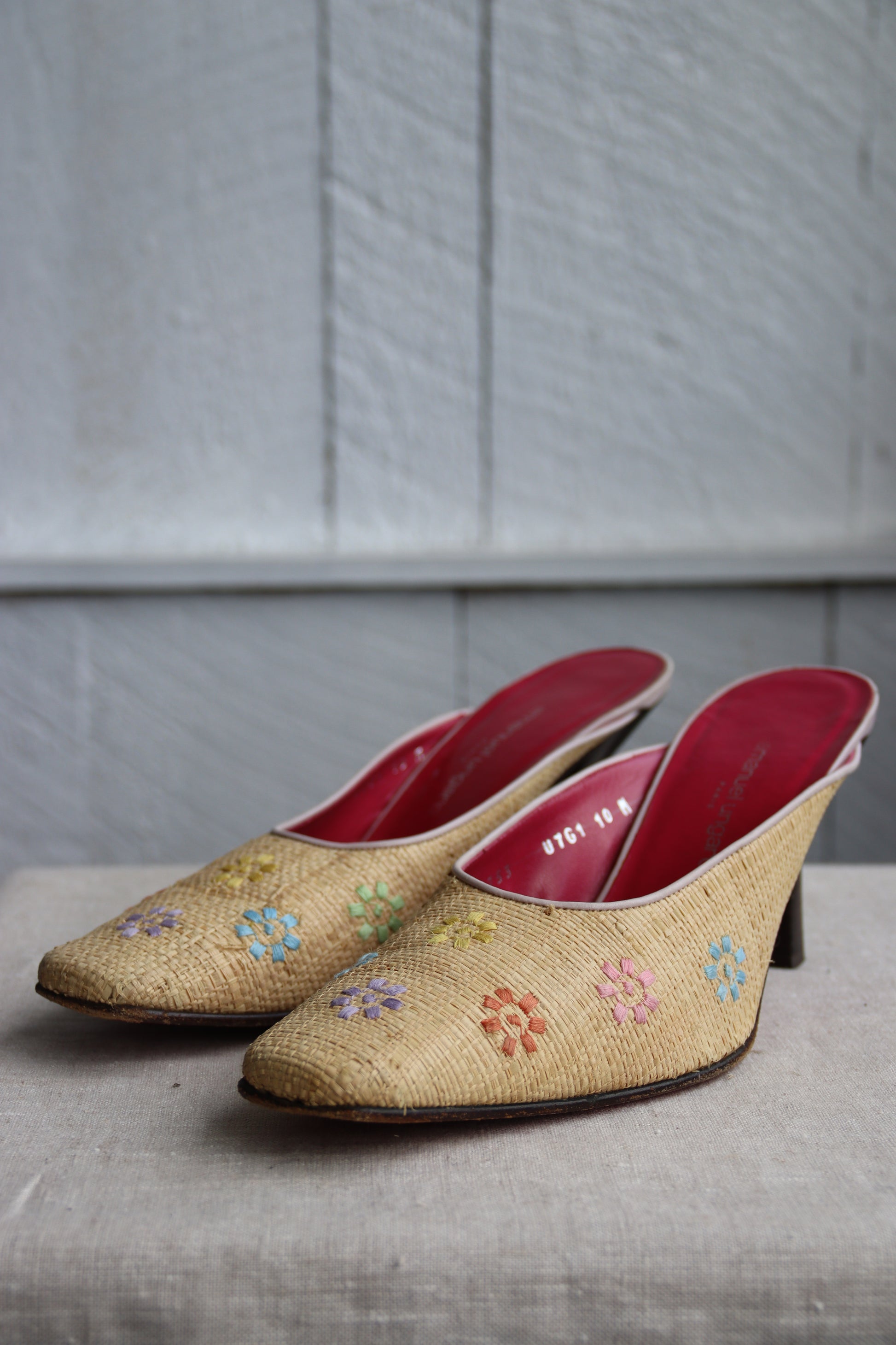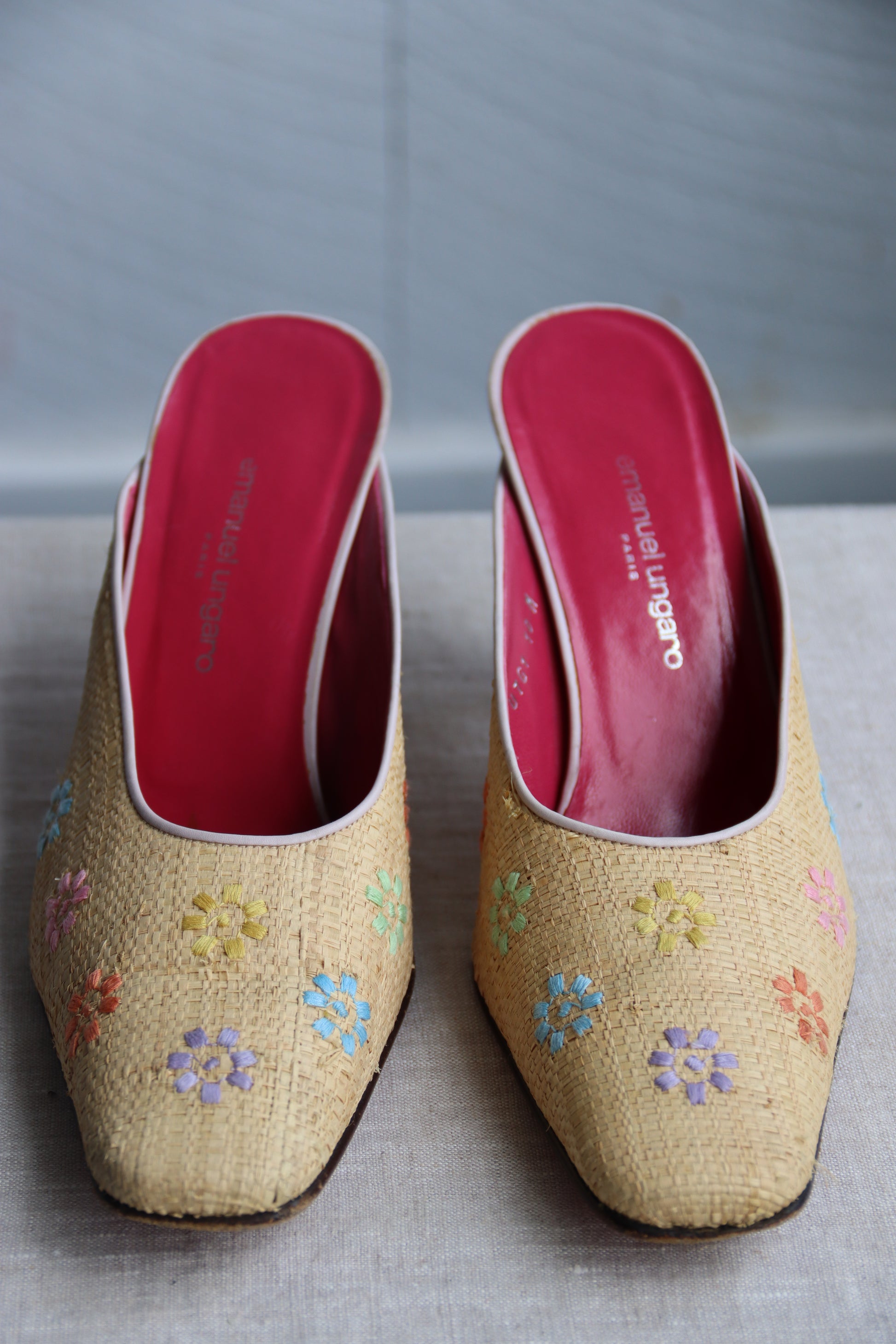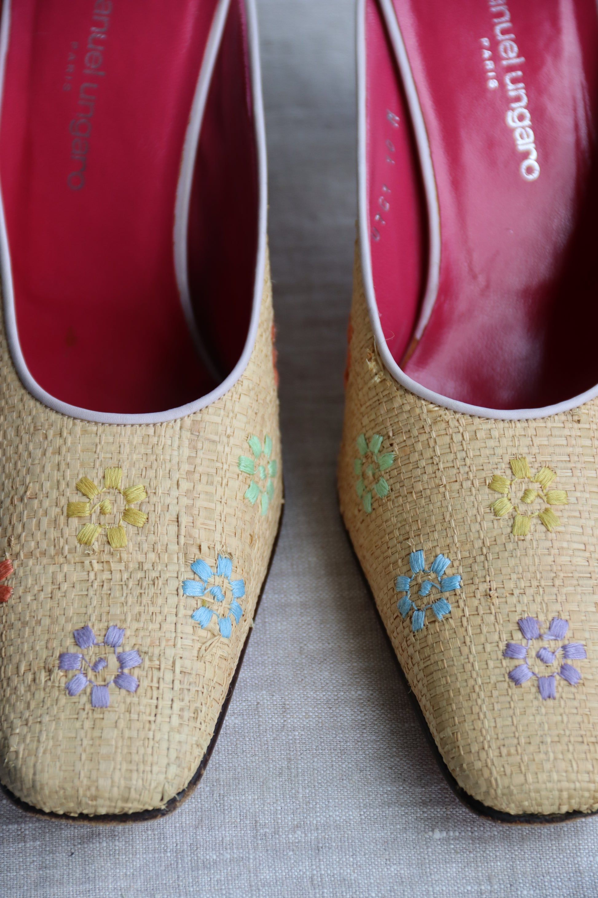 Emanuel Ungaro Straw Floral Heels
