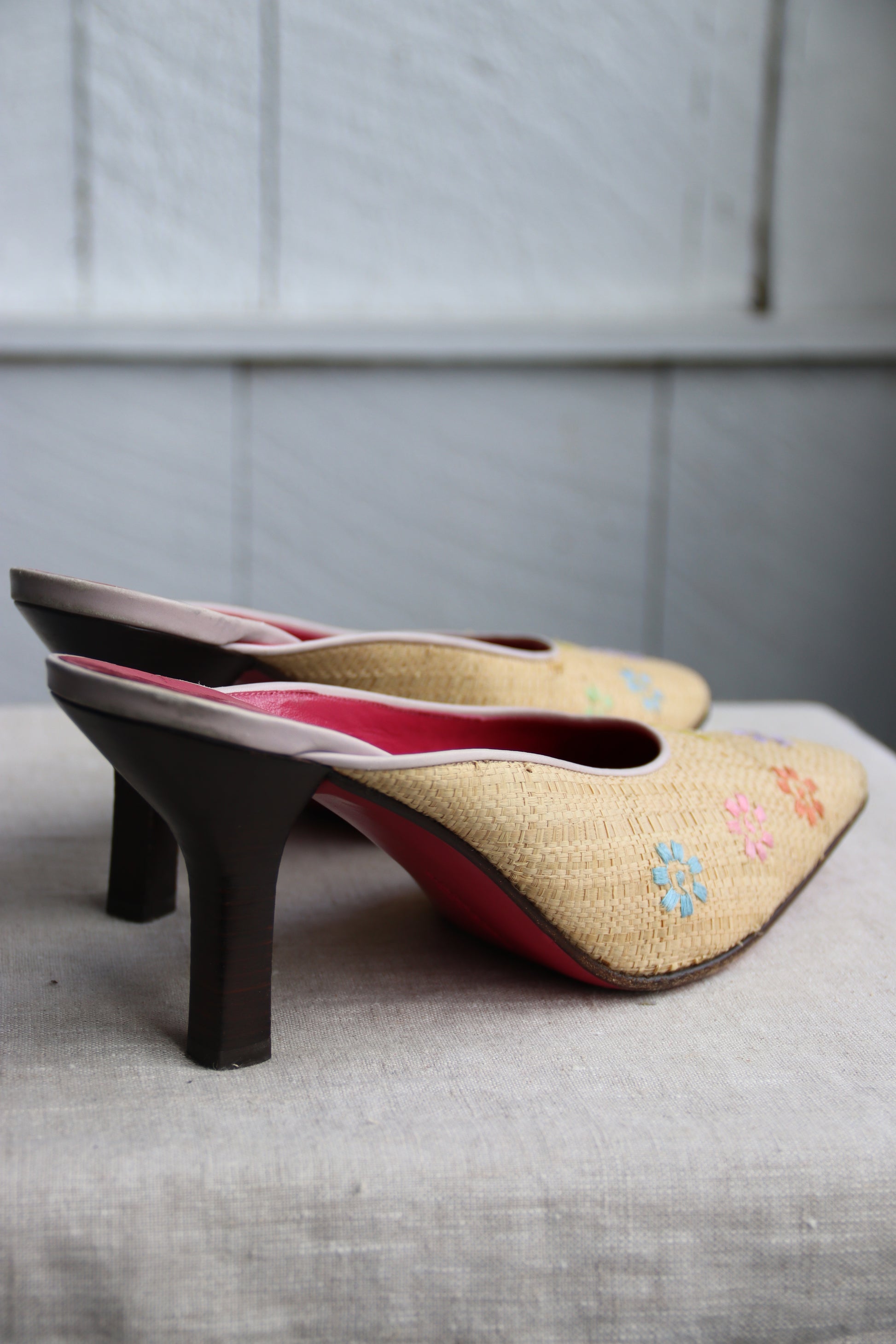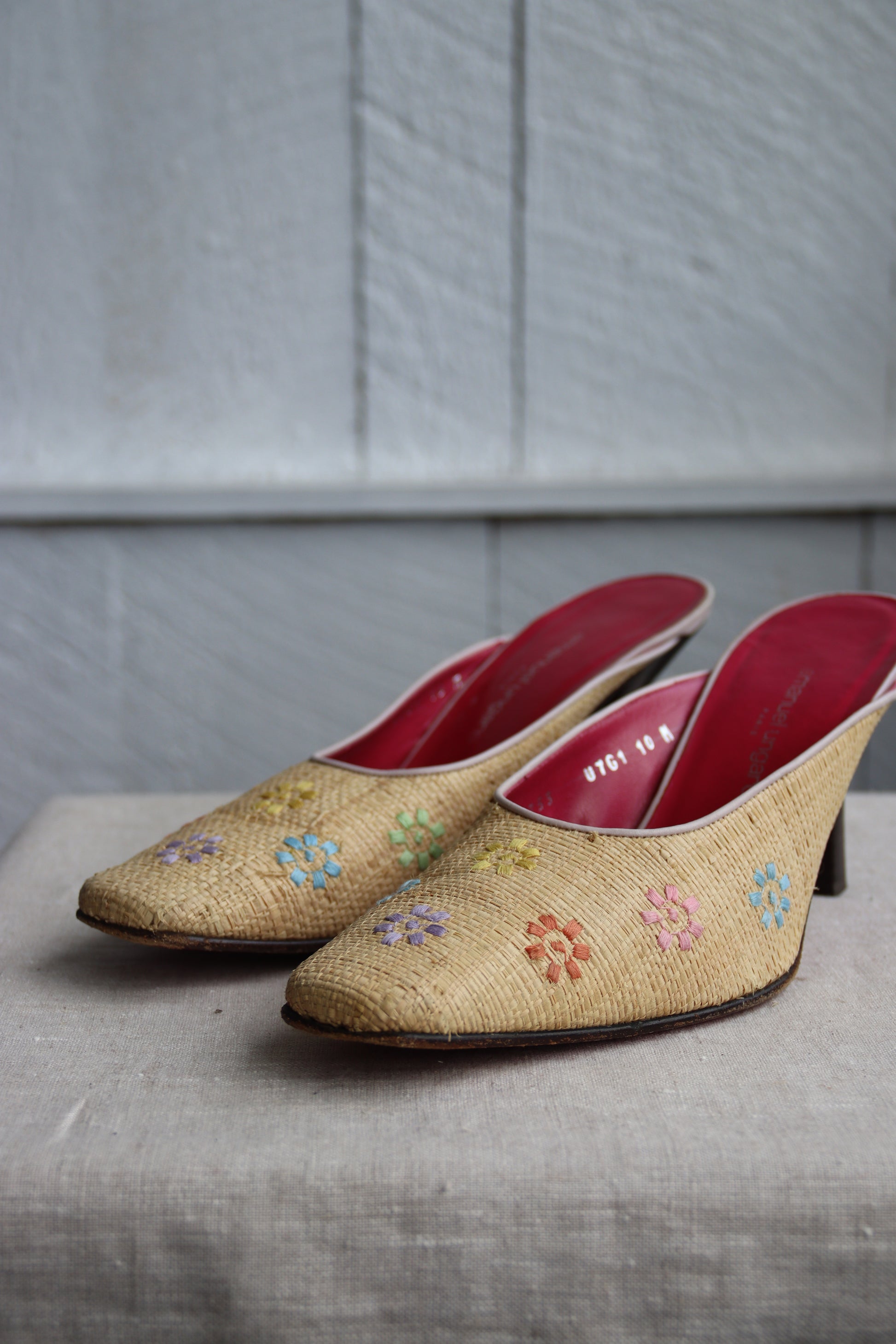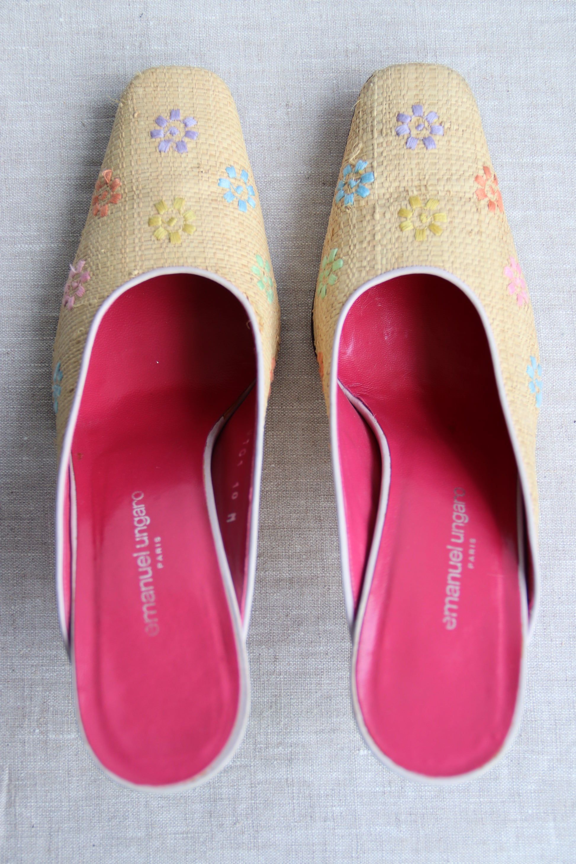 Emanuel Ungaro Straw Floral Heels
