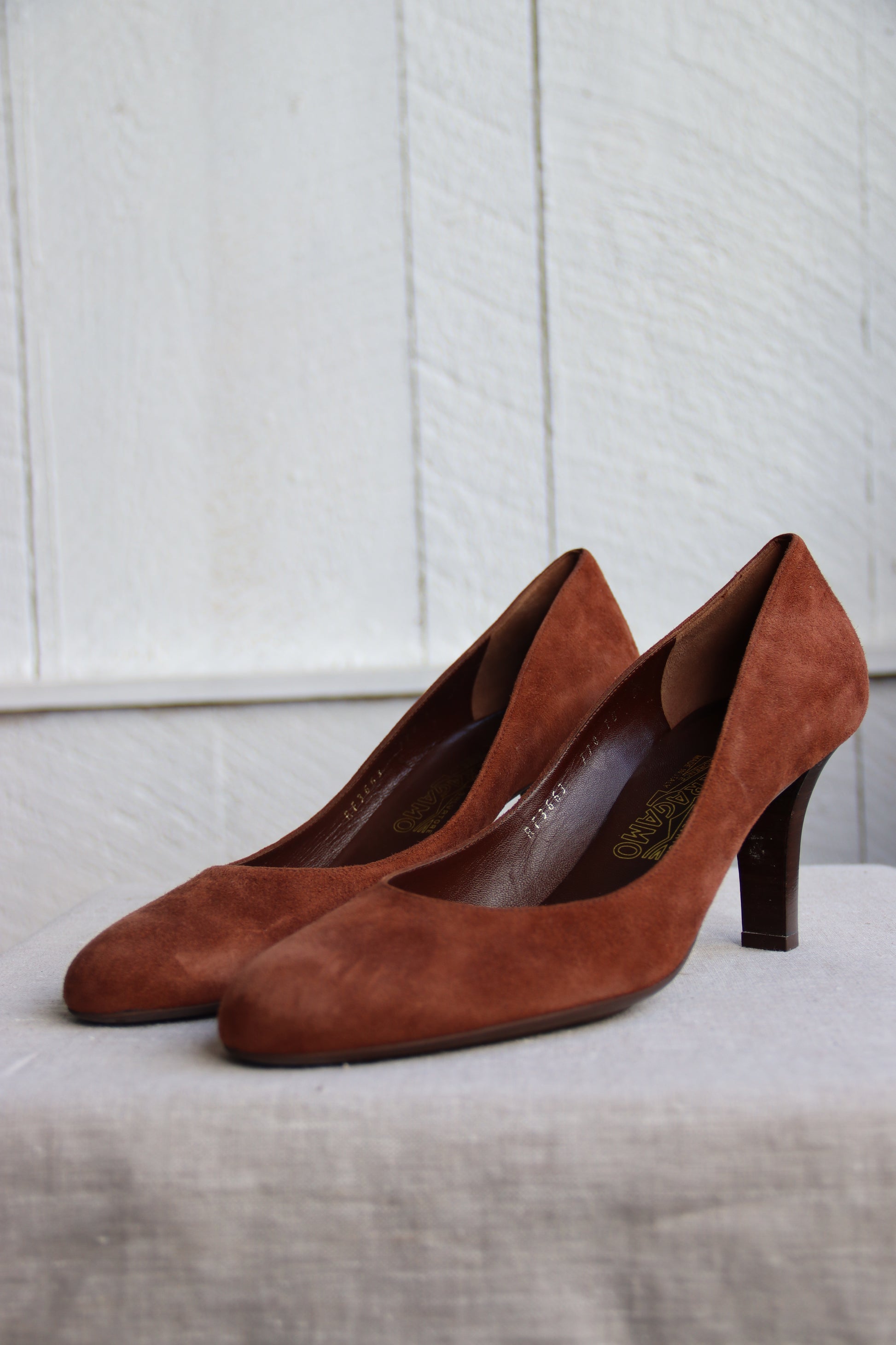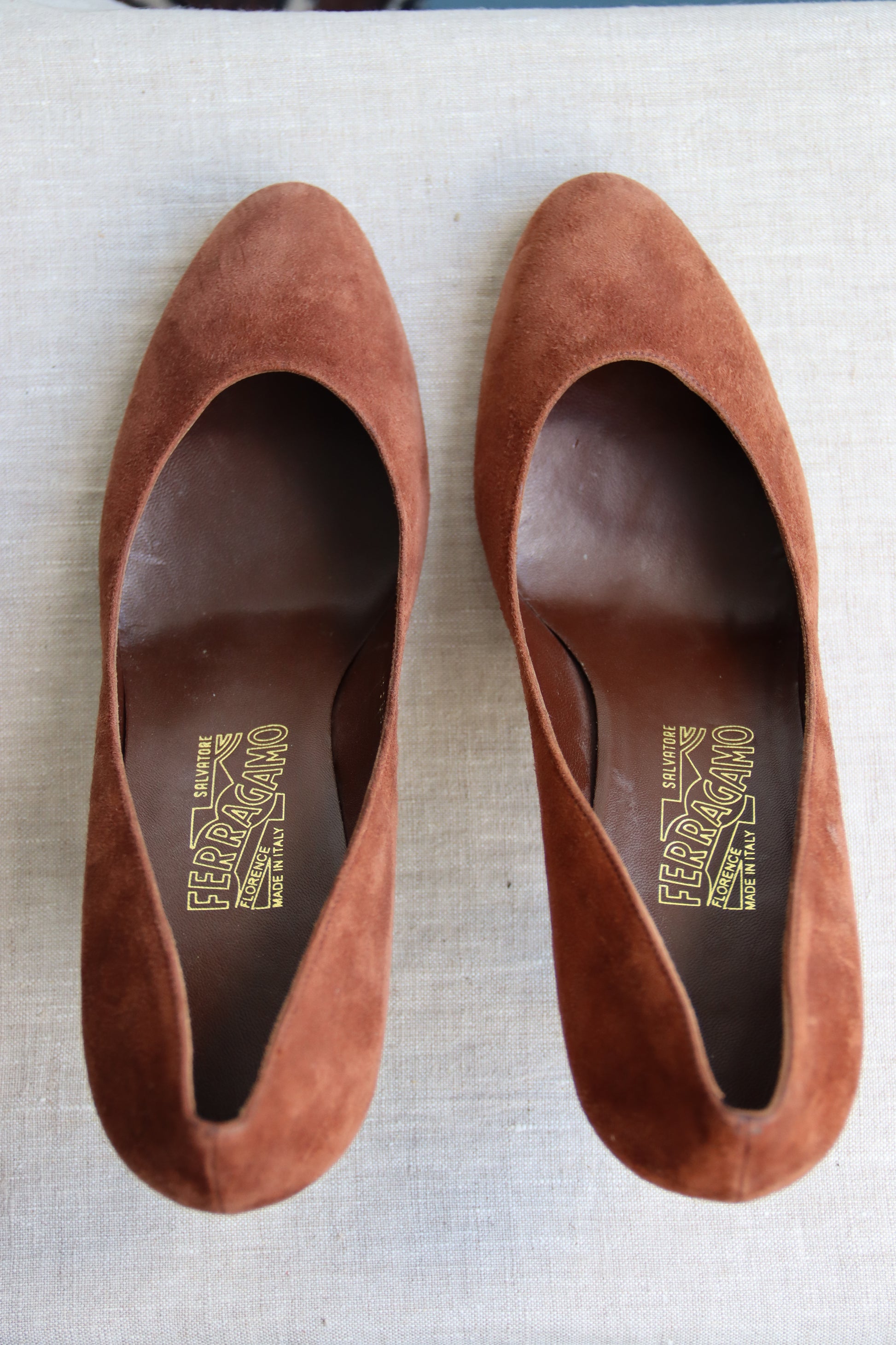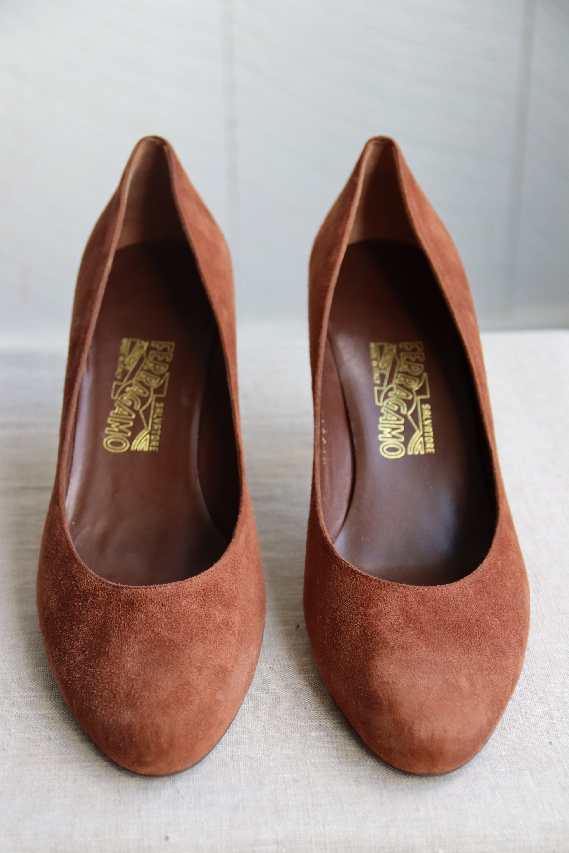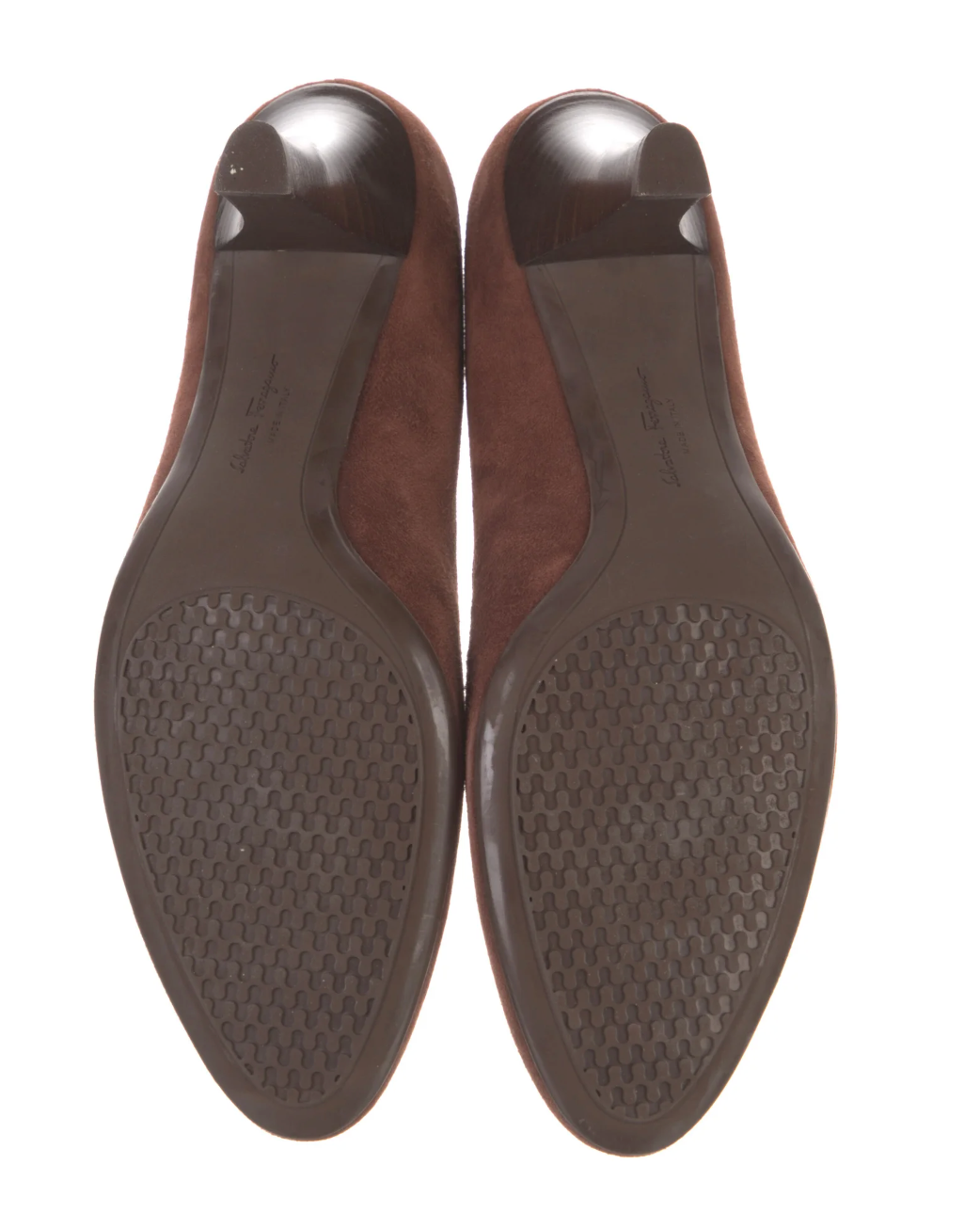 Salvatore Ferragamo brown suede pumps with original box. Brand new, never worn.
