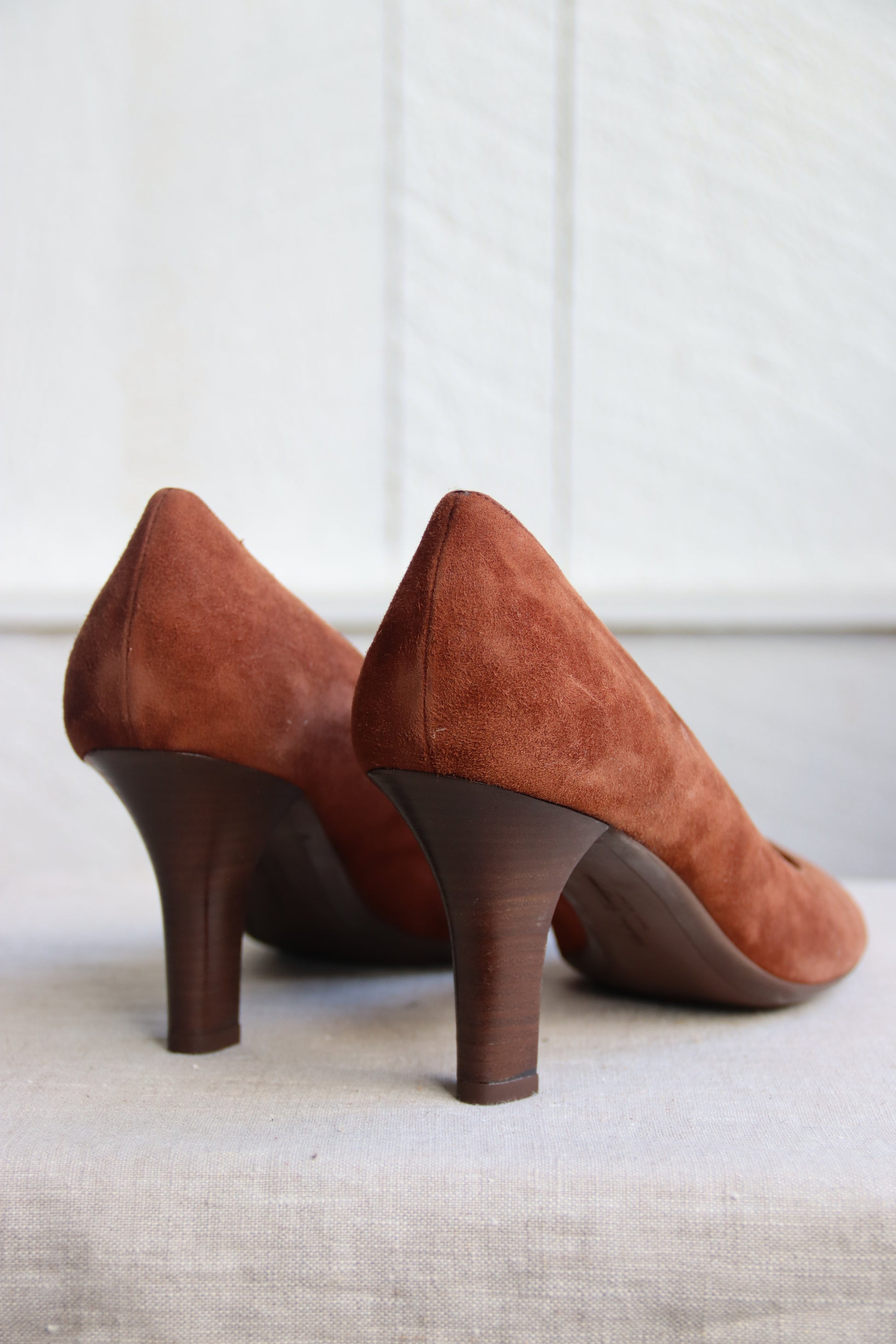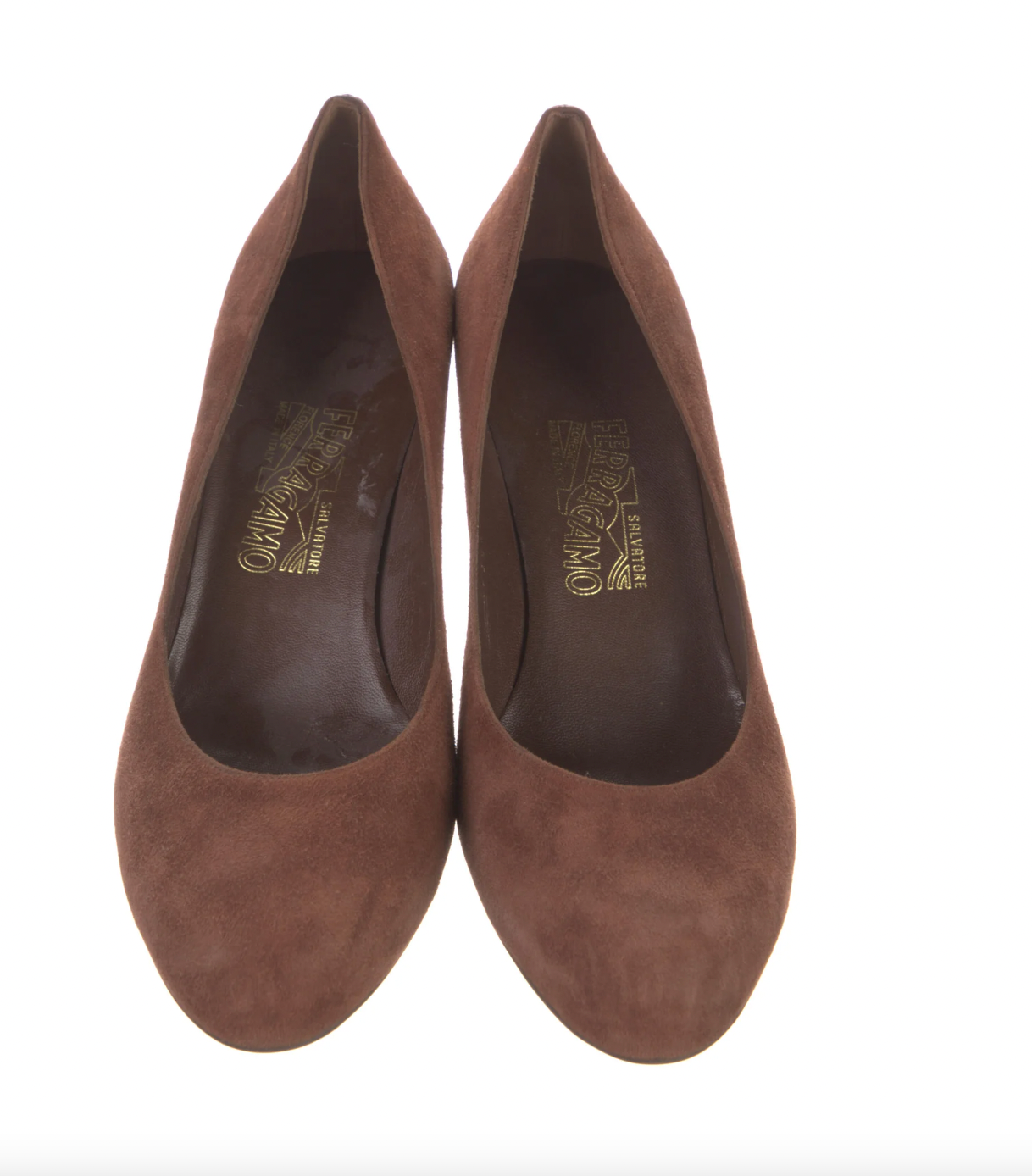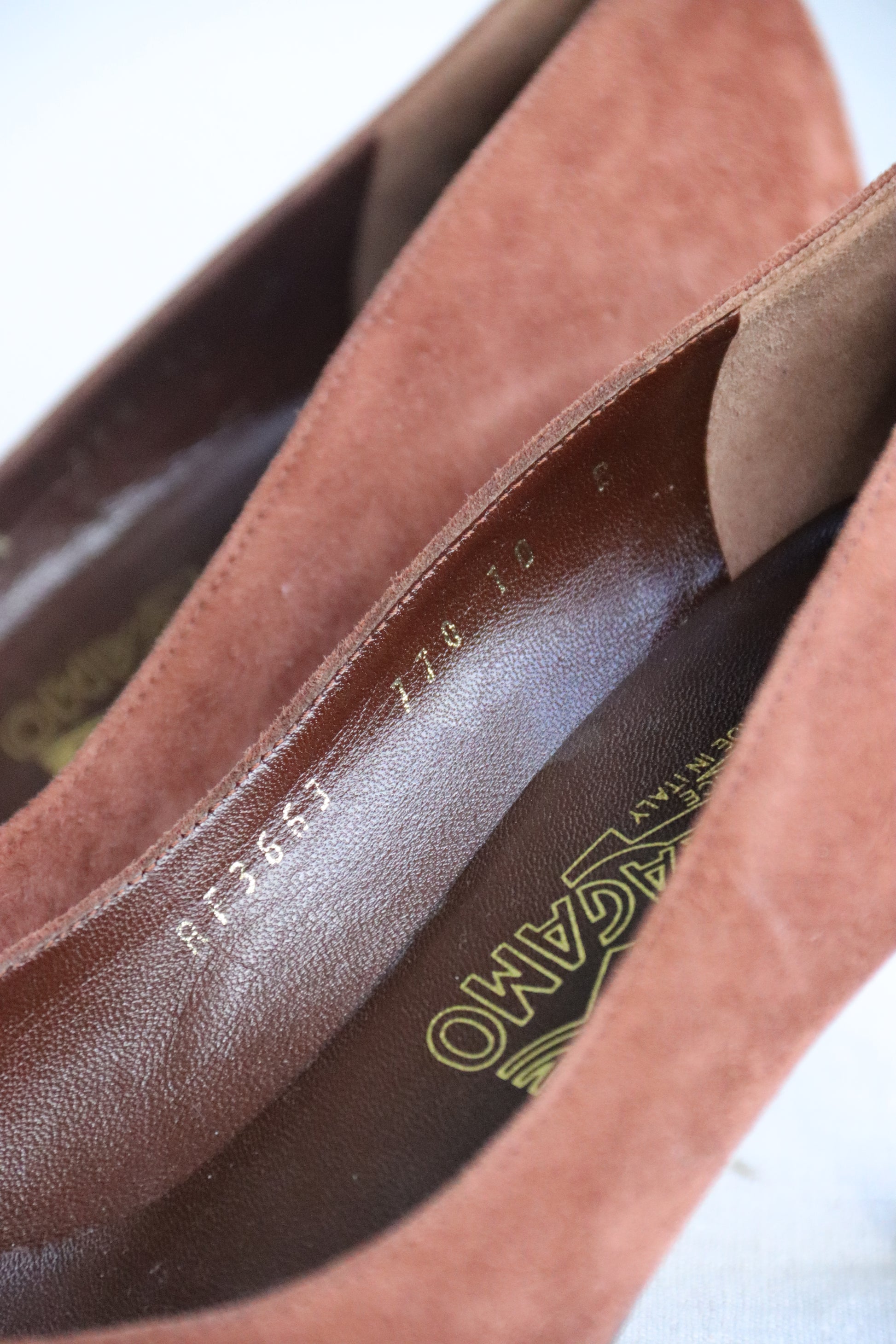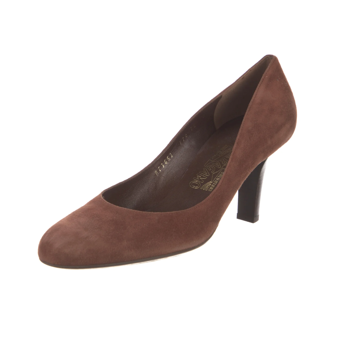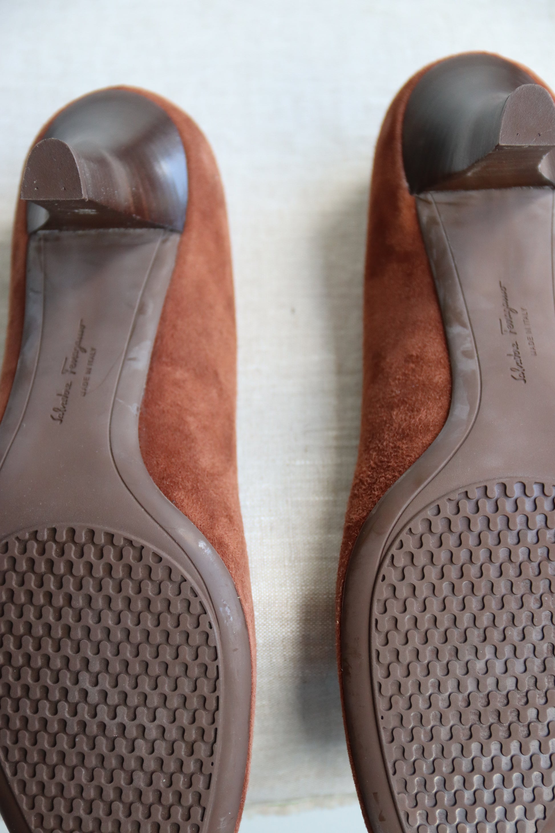 Salvatore Ferragamo brown suede pumps with original box. Brand new, never worn.