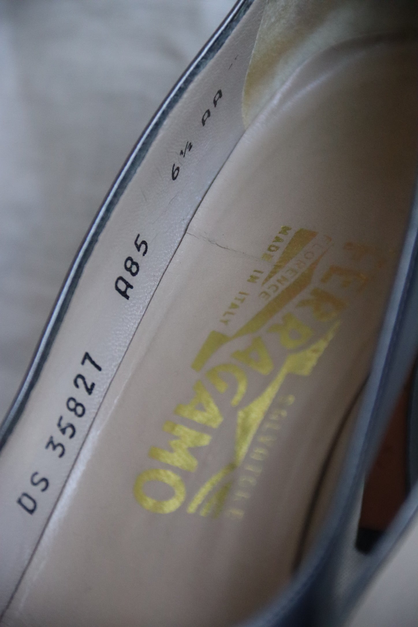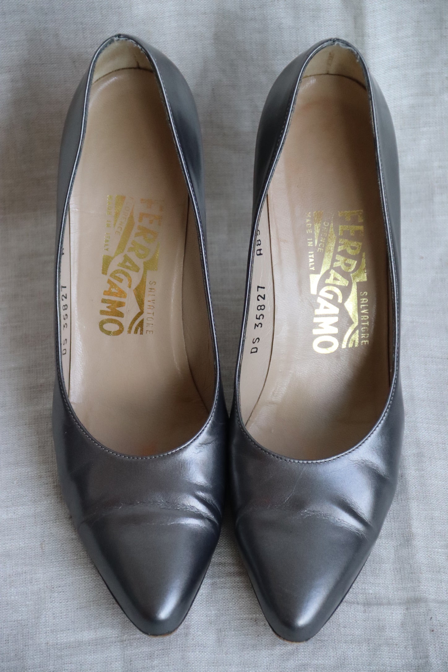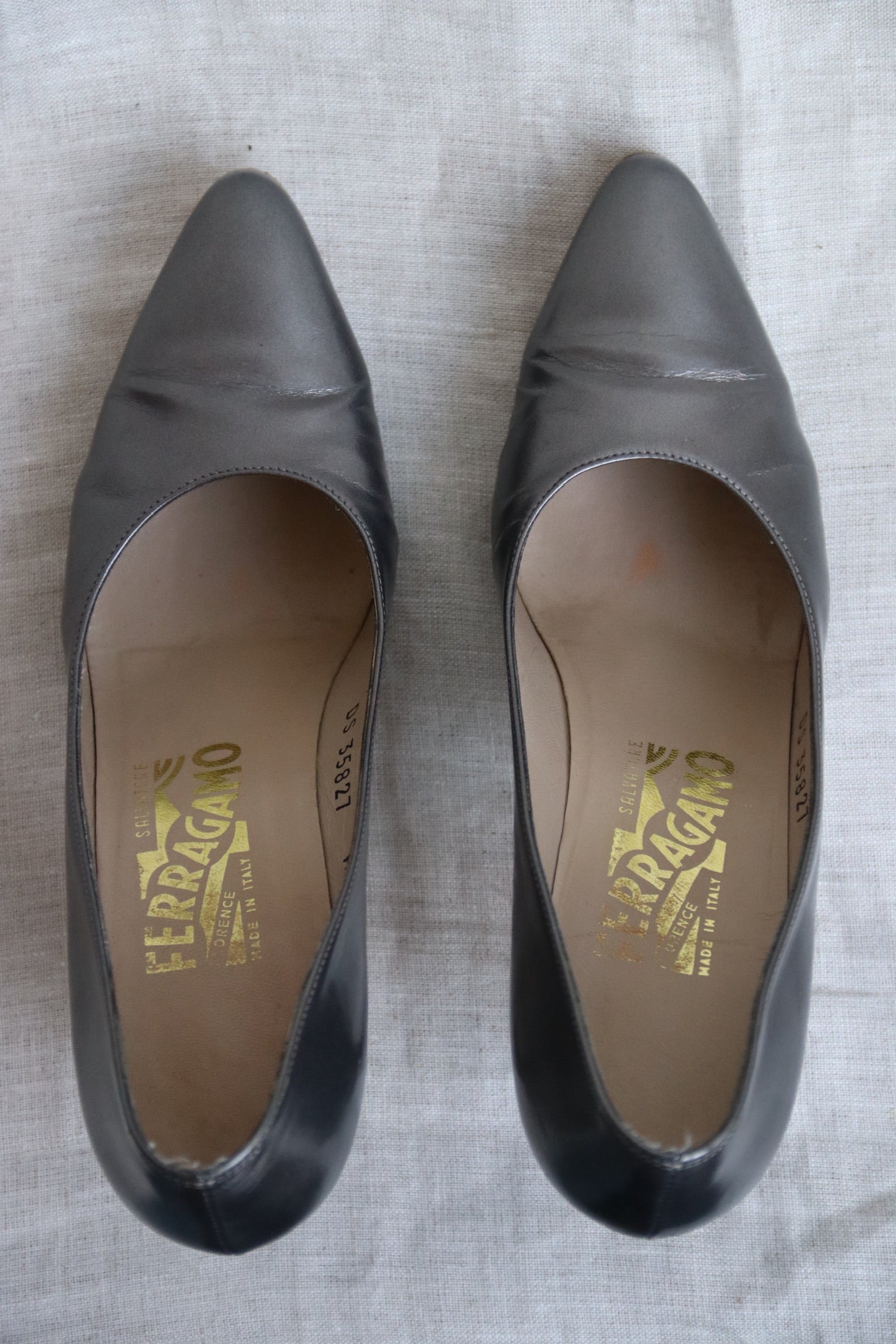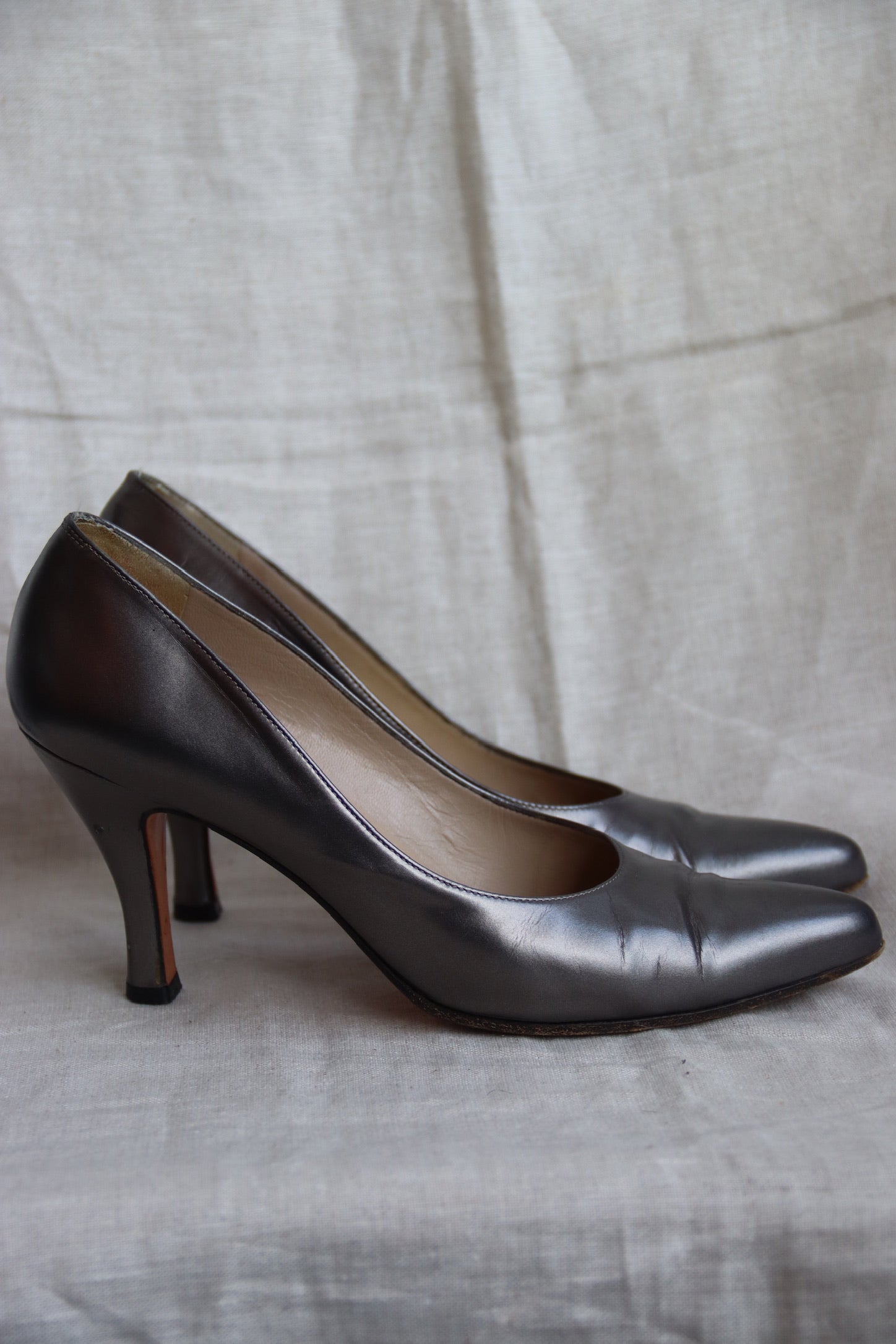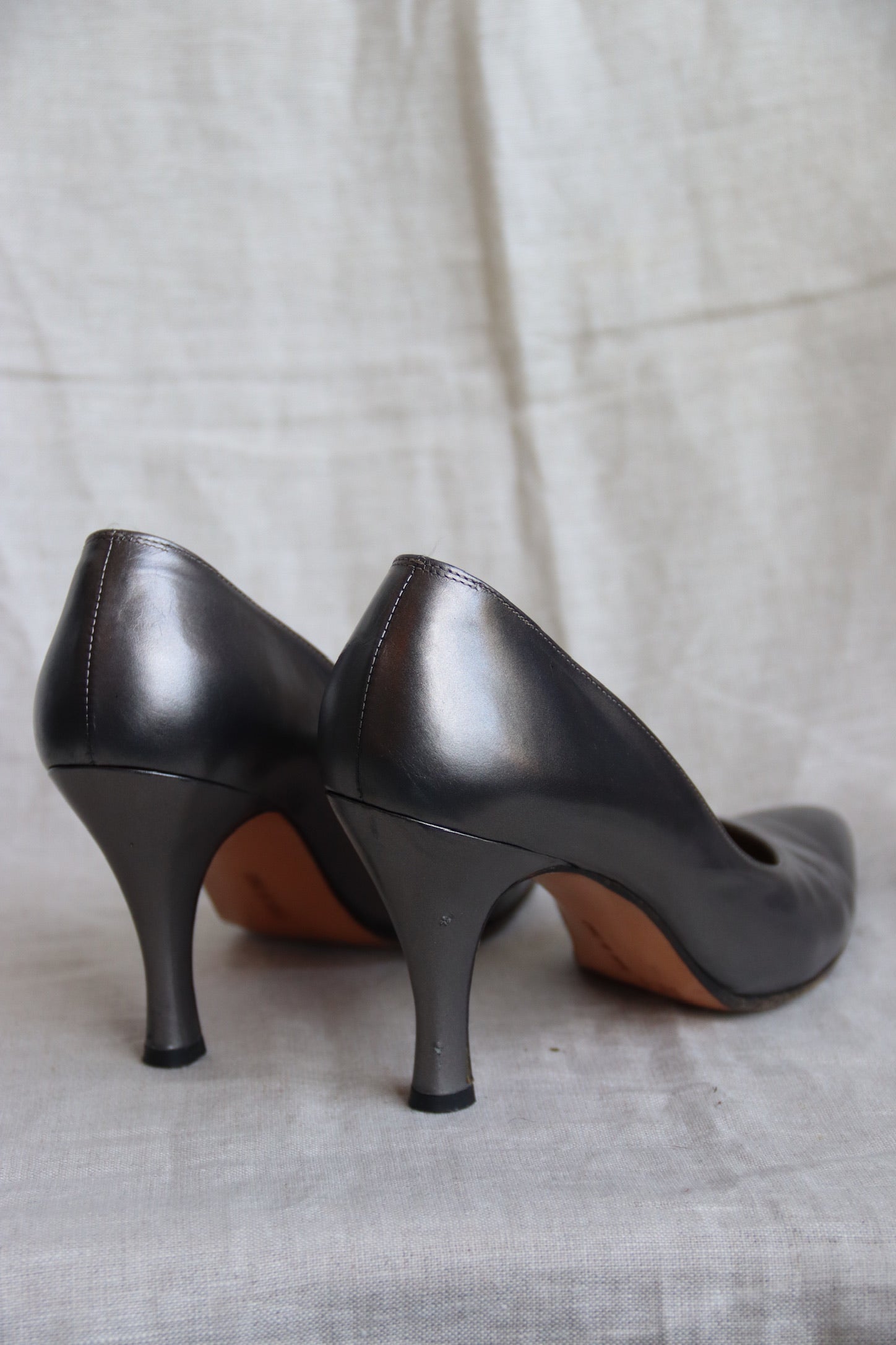 Ferragamo Silver Grey Patent Heels
