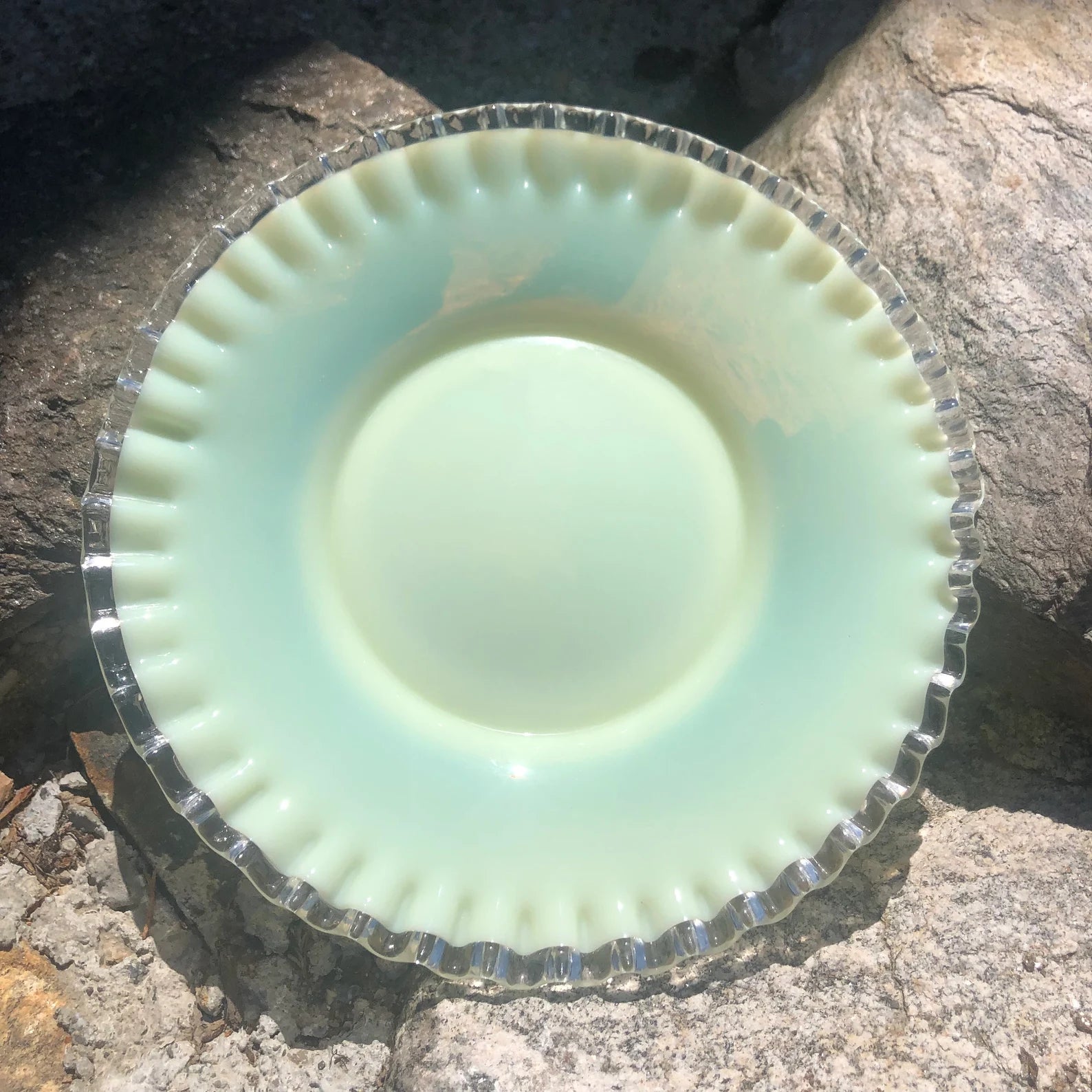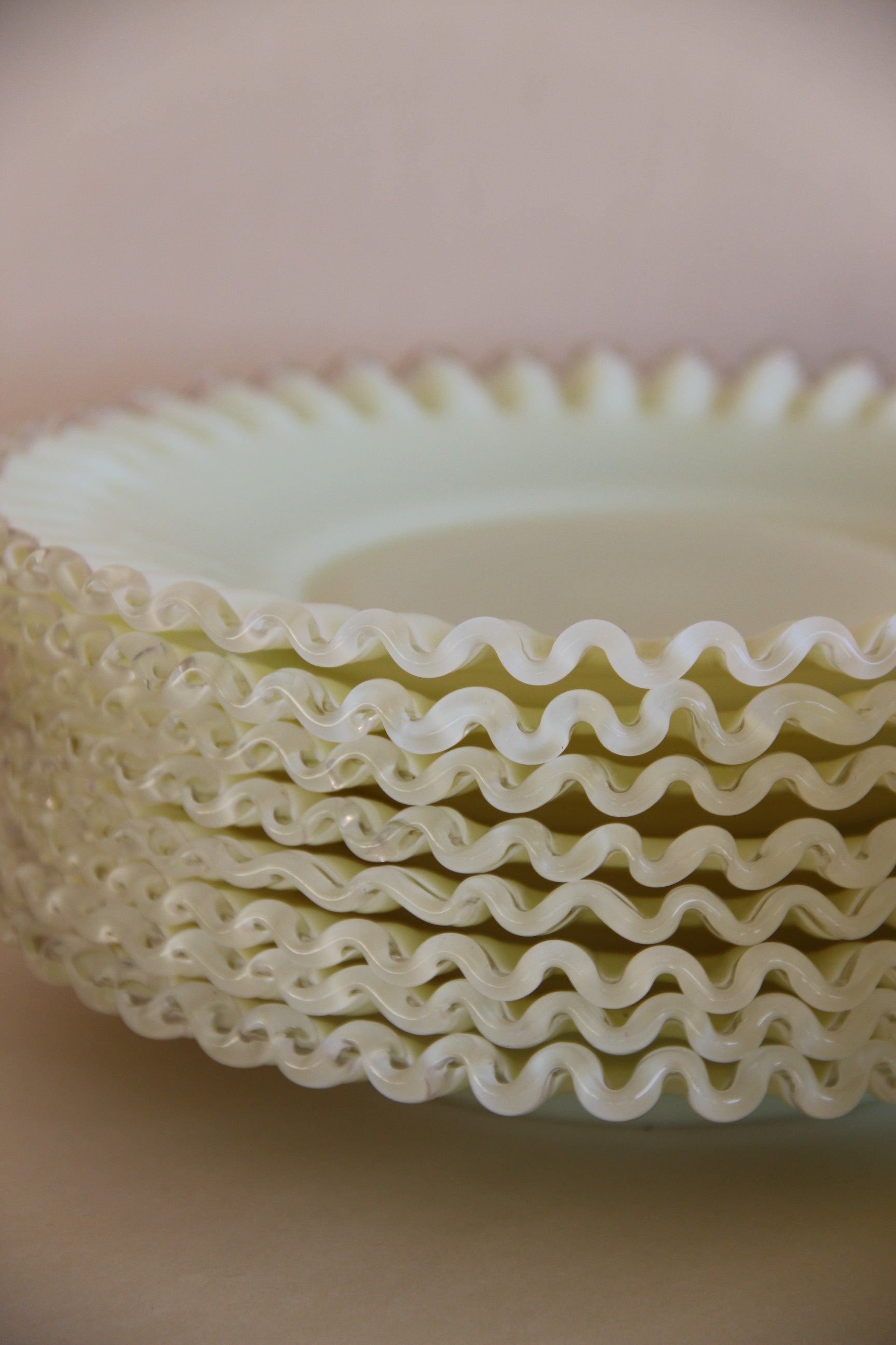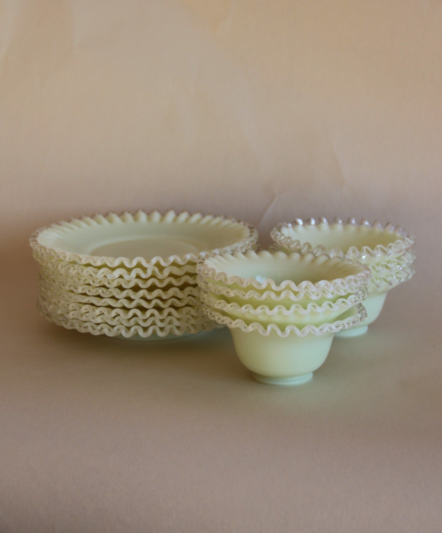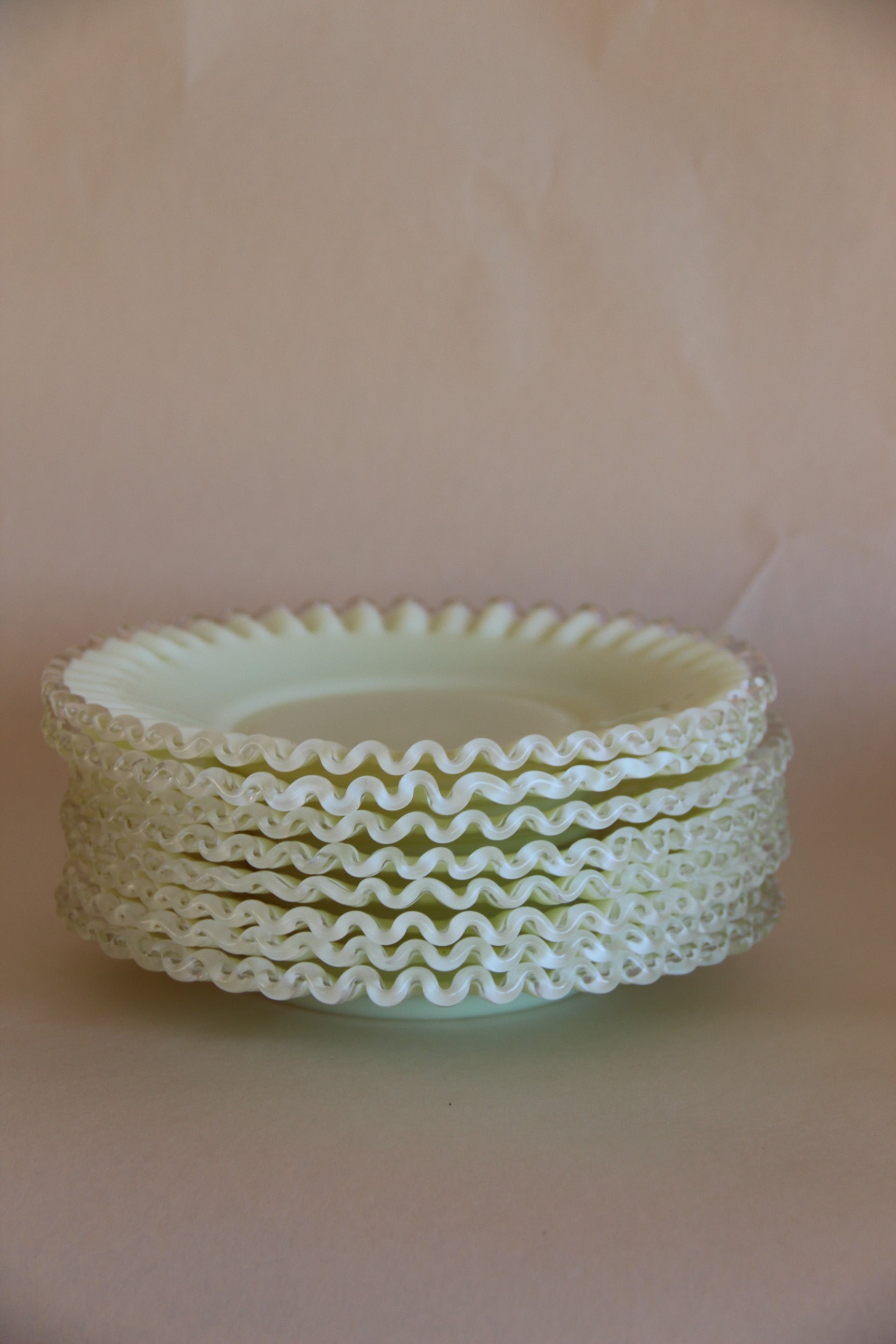 Set of Fenton Glass Silver Crest Opalescent Yellow Milk Glass Plates and Bowls