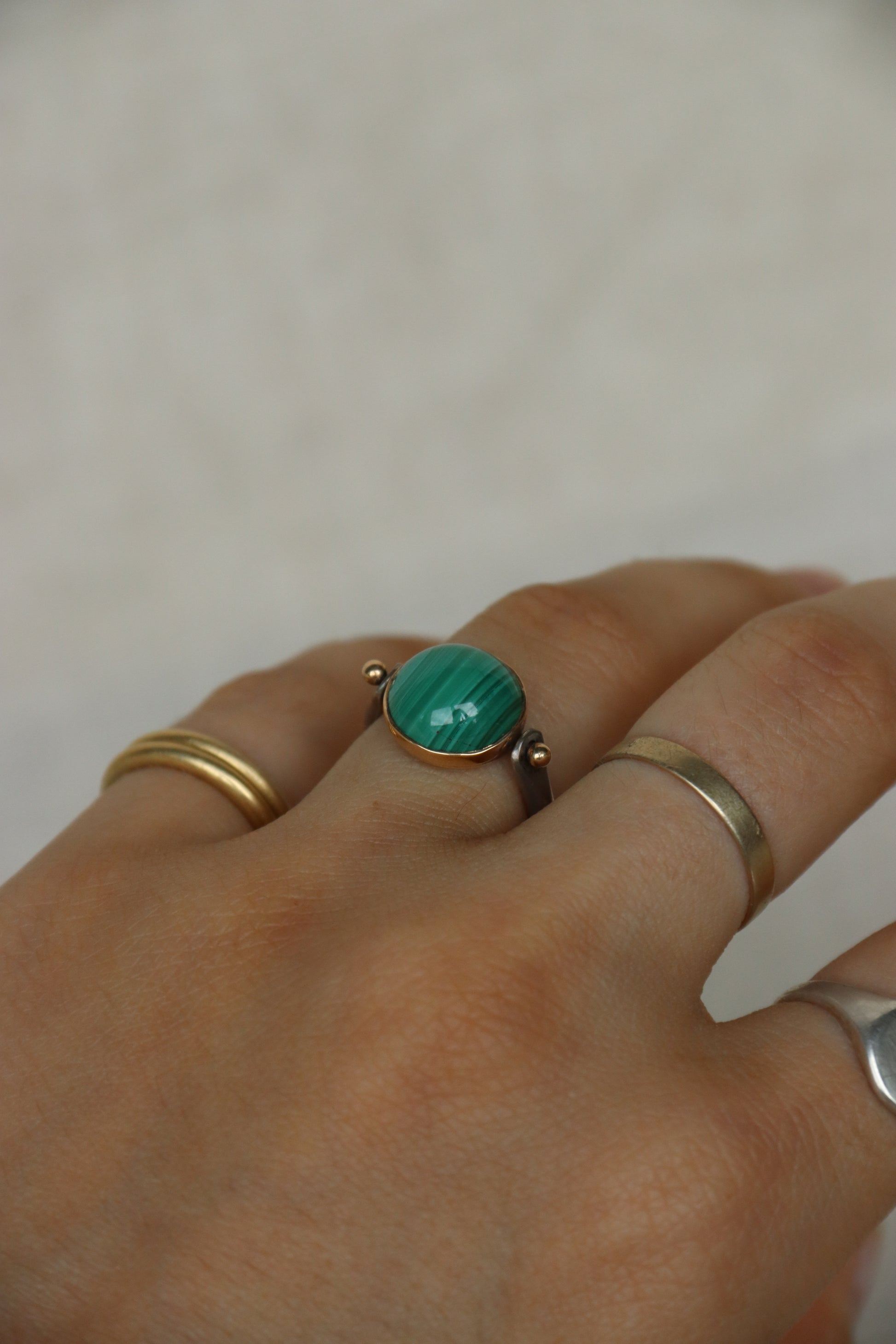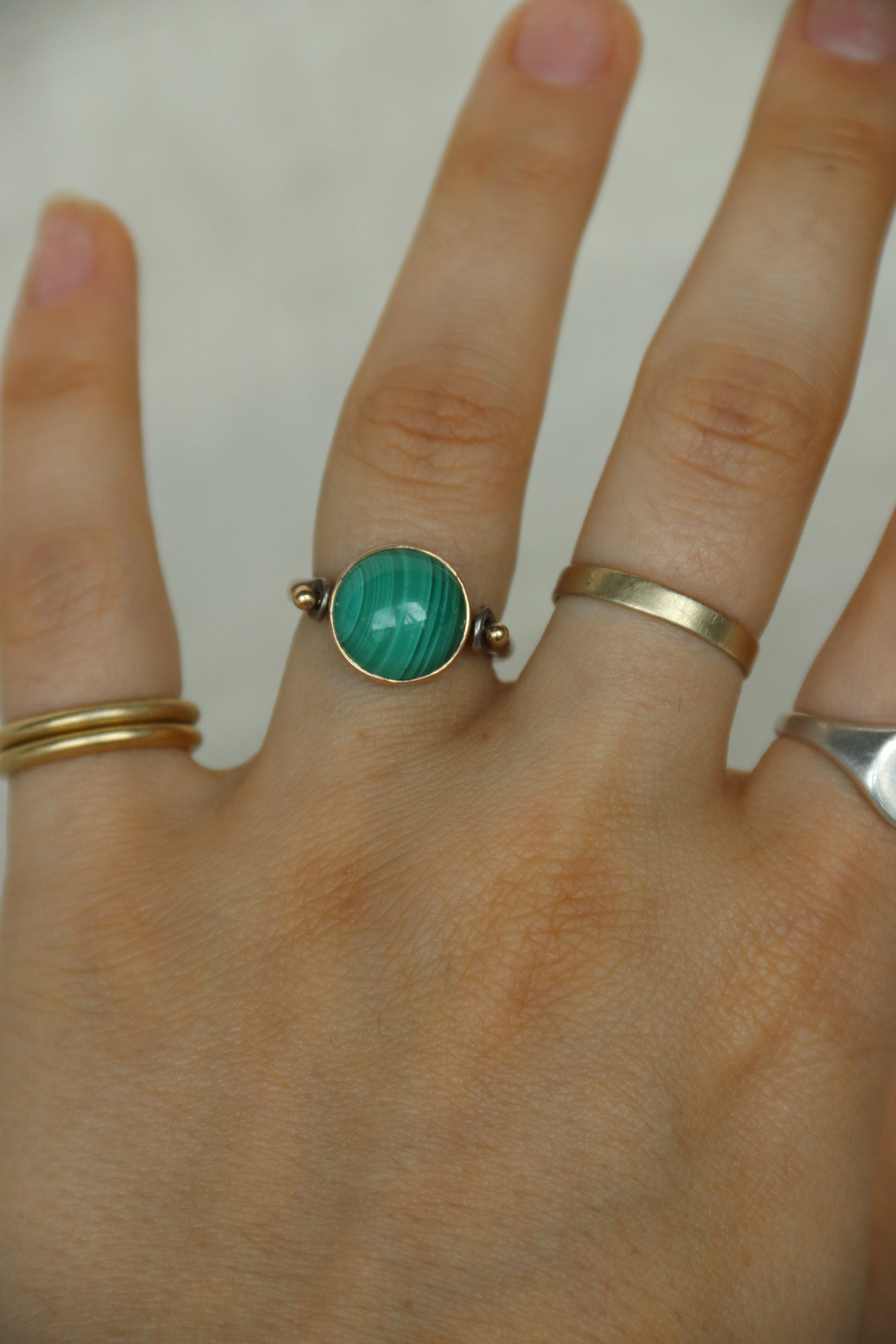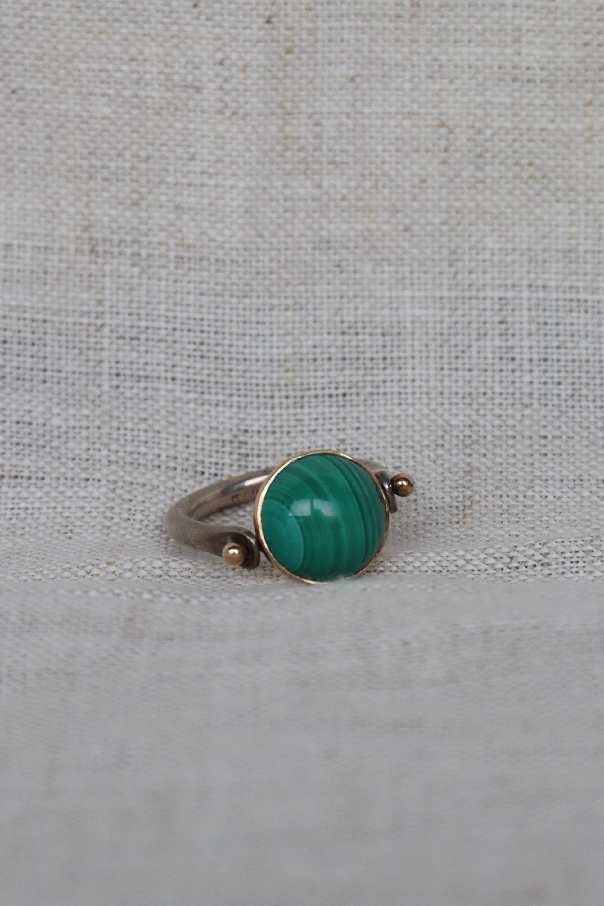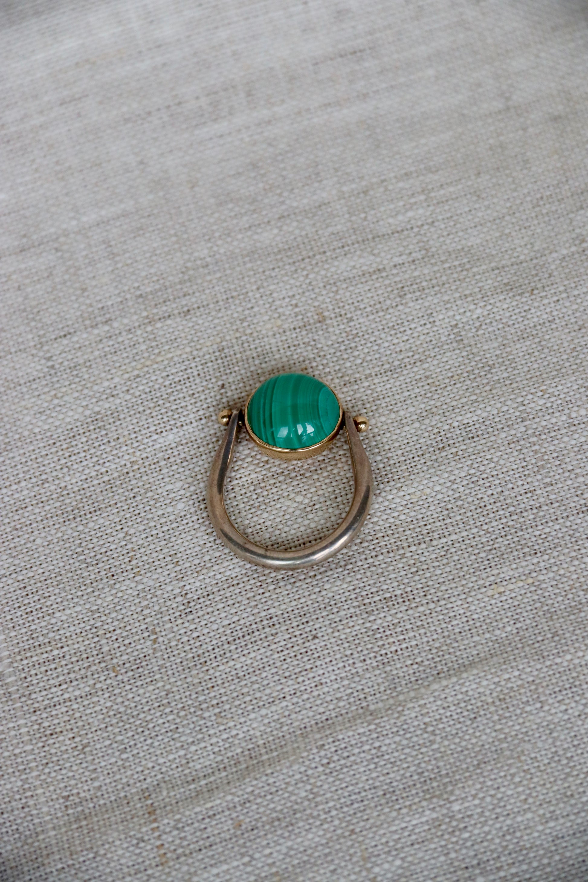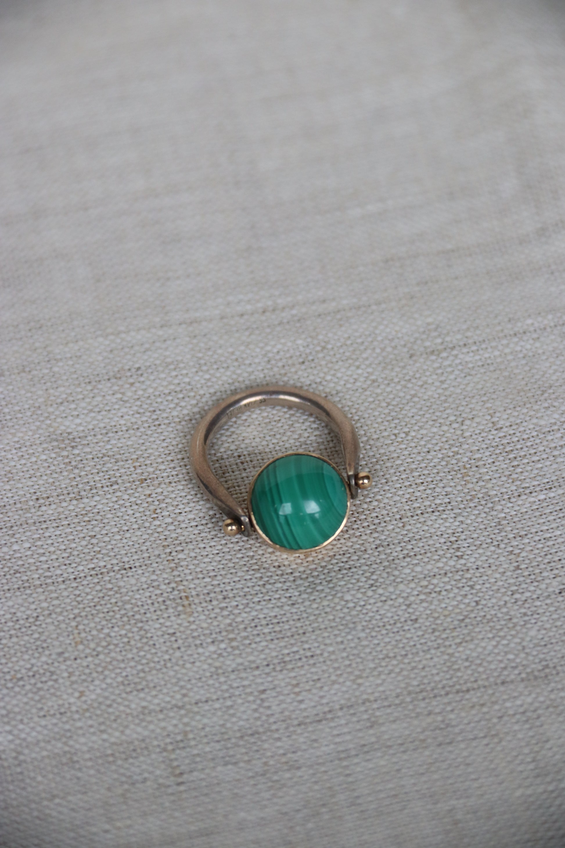 Sterling Silver and 14k Malachite Flip Ring
