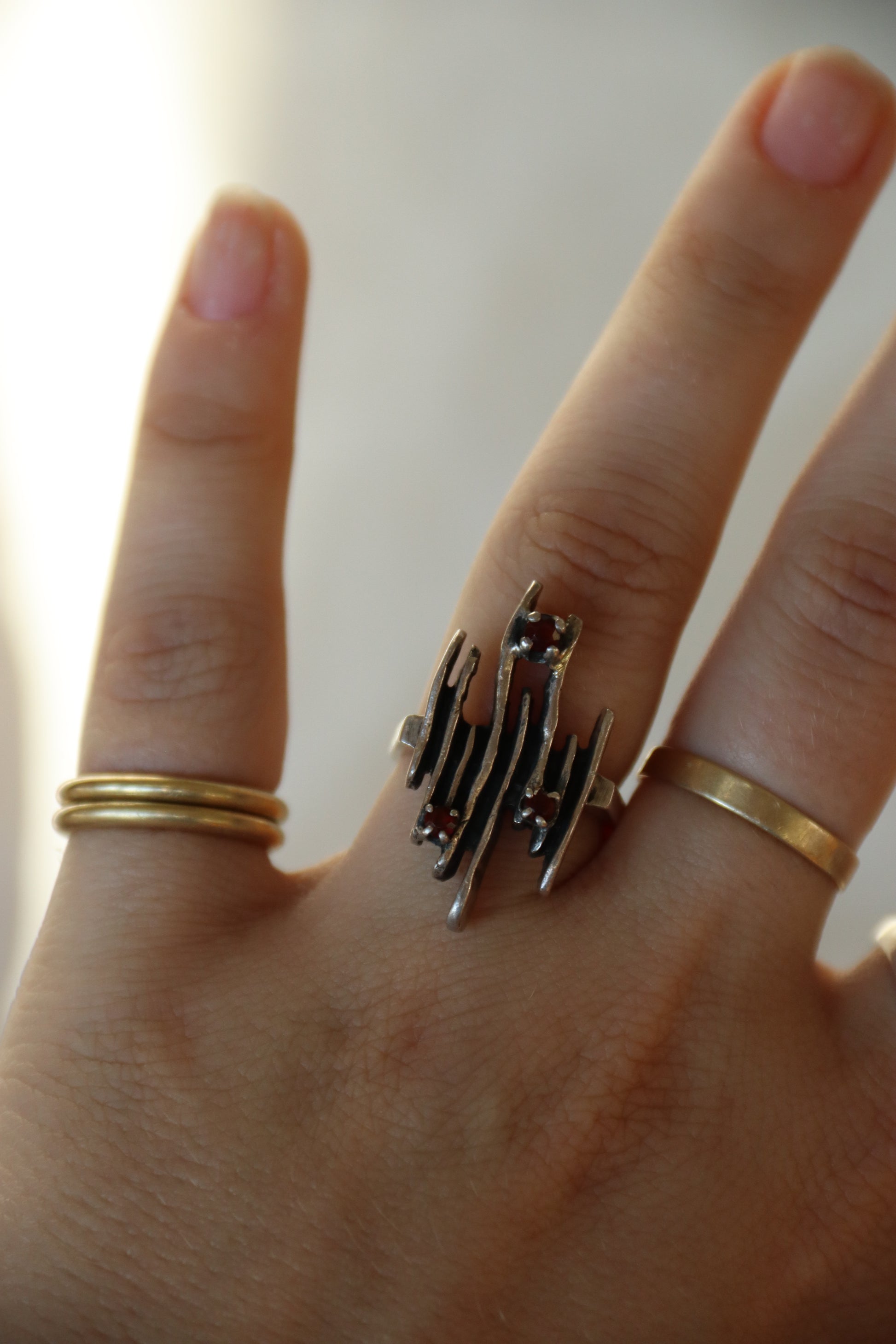 Sterling Silver Garnet Graph Ring