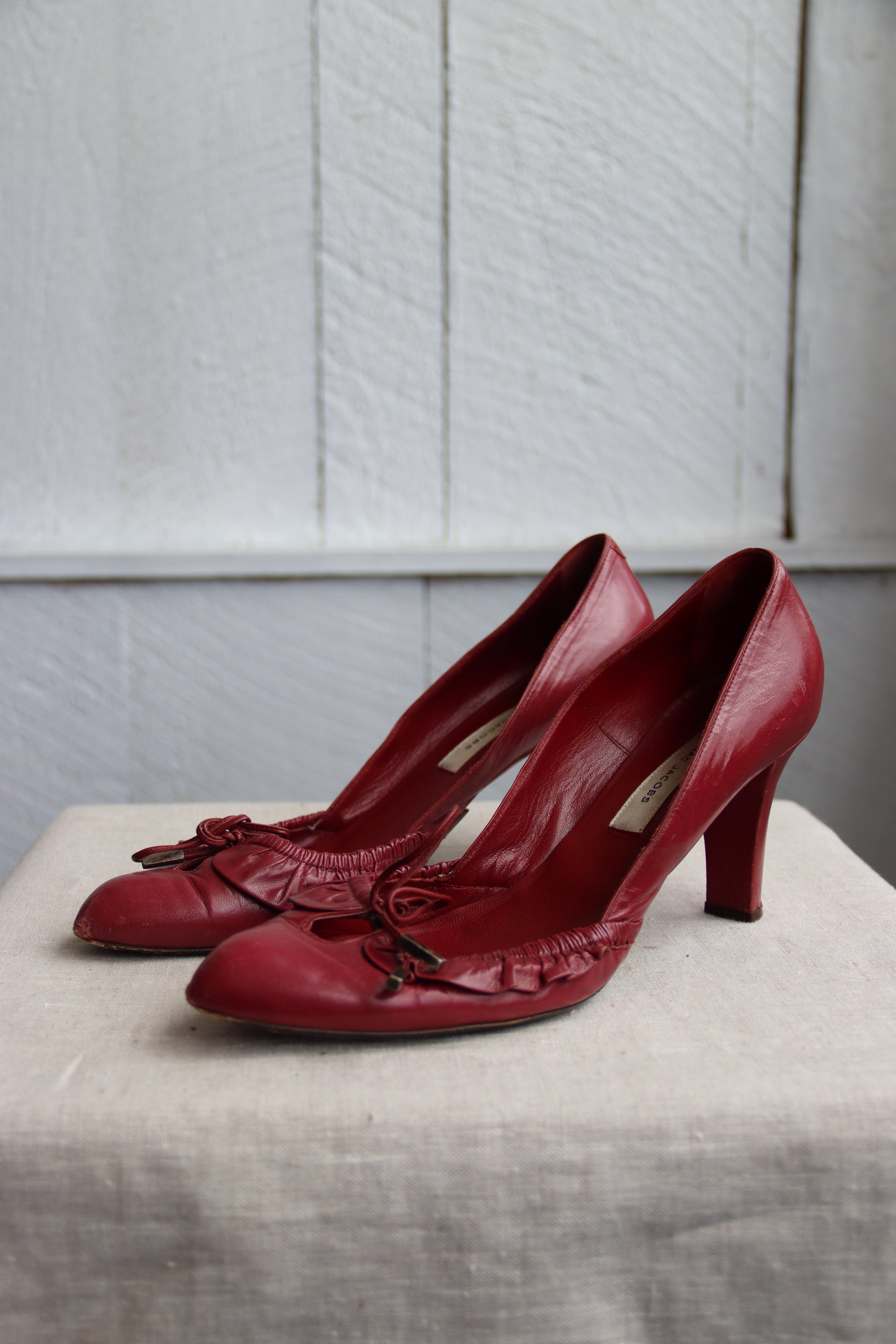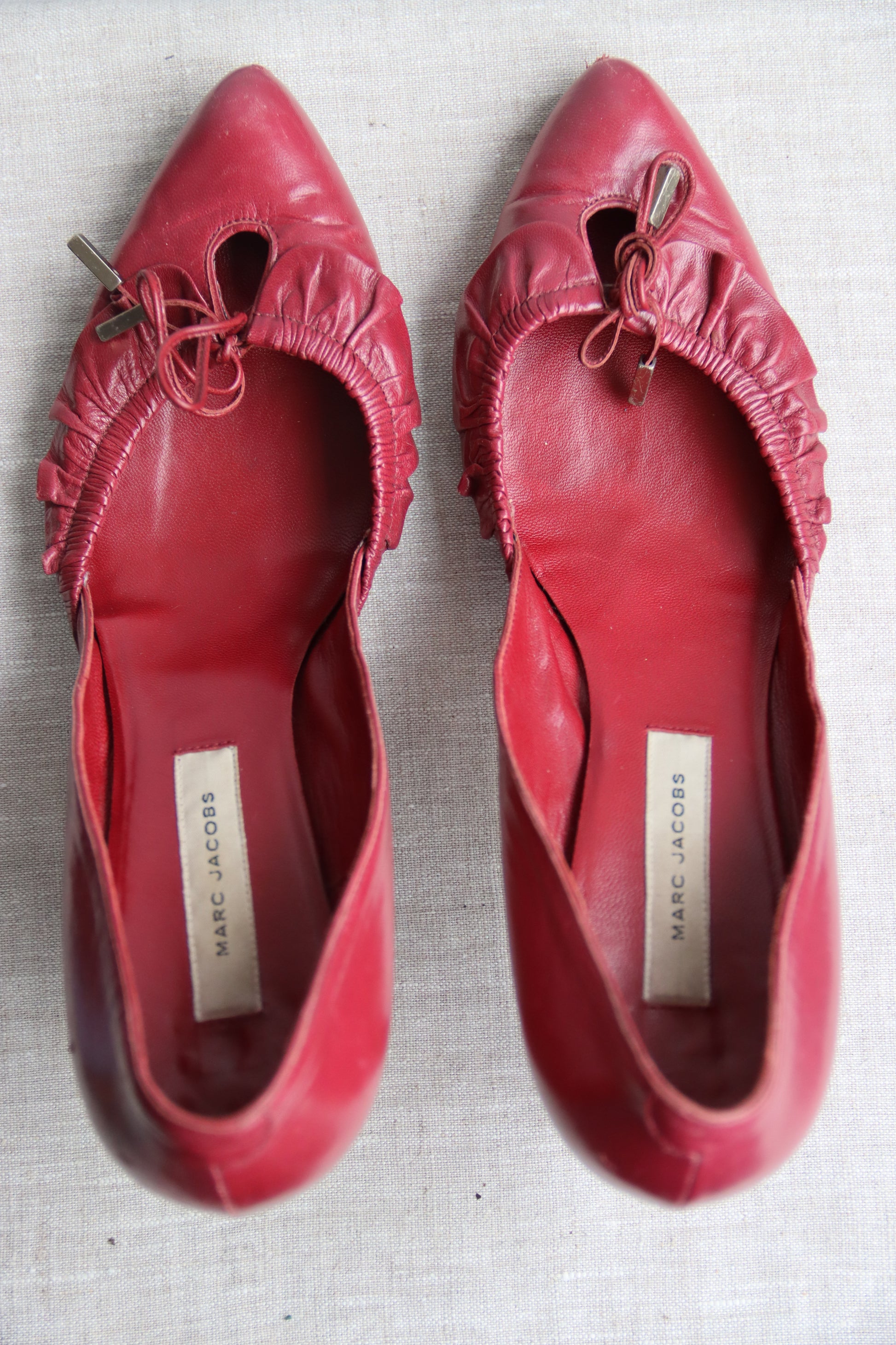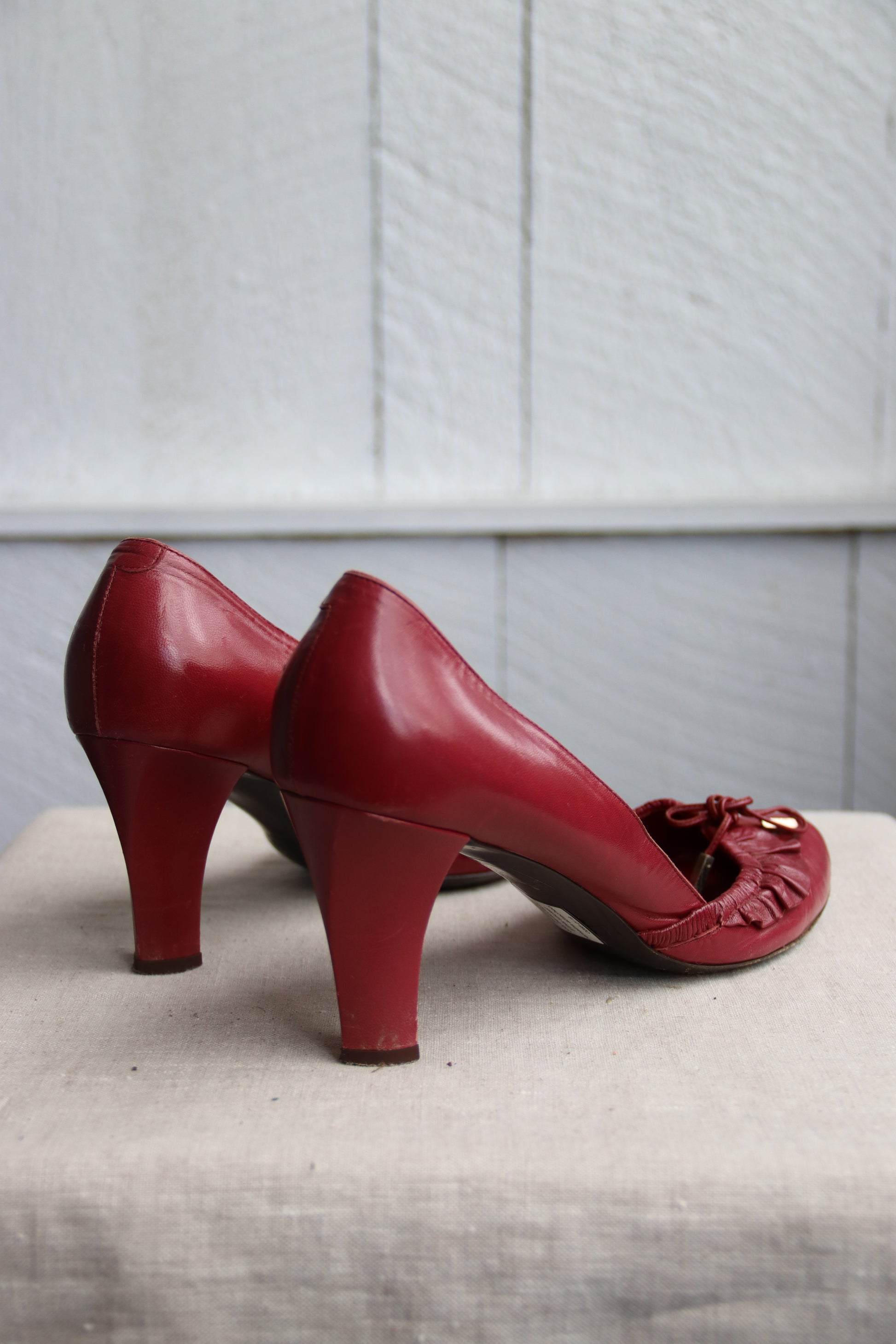 Marc Jacobs Burgundy Leather Ruffle Heels