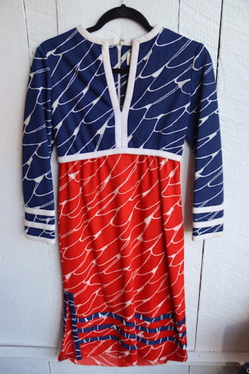 Vintage 60s Neusteters Red and Blue Abstract Patterned Dress
