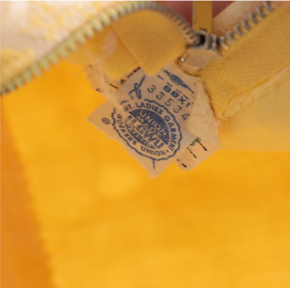 retains a vintage union label (ILGWU 1964-1973 era) stitched to the lining