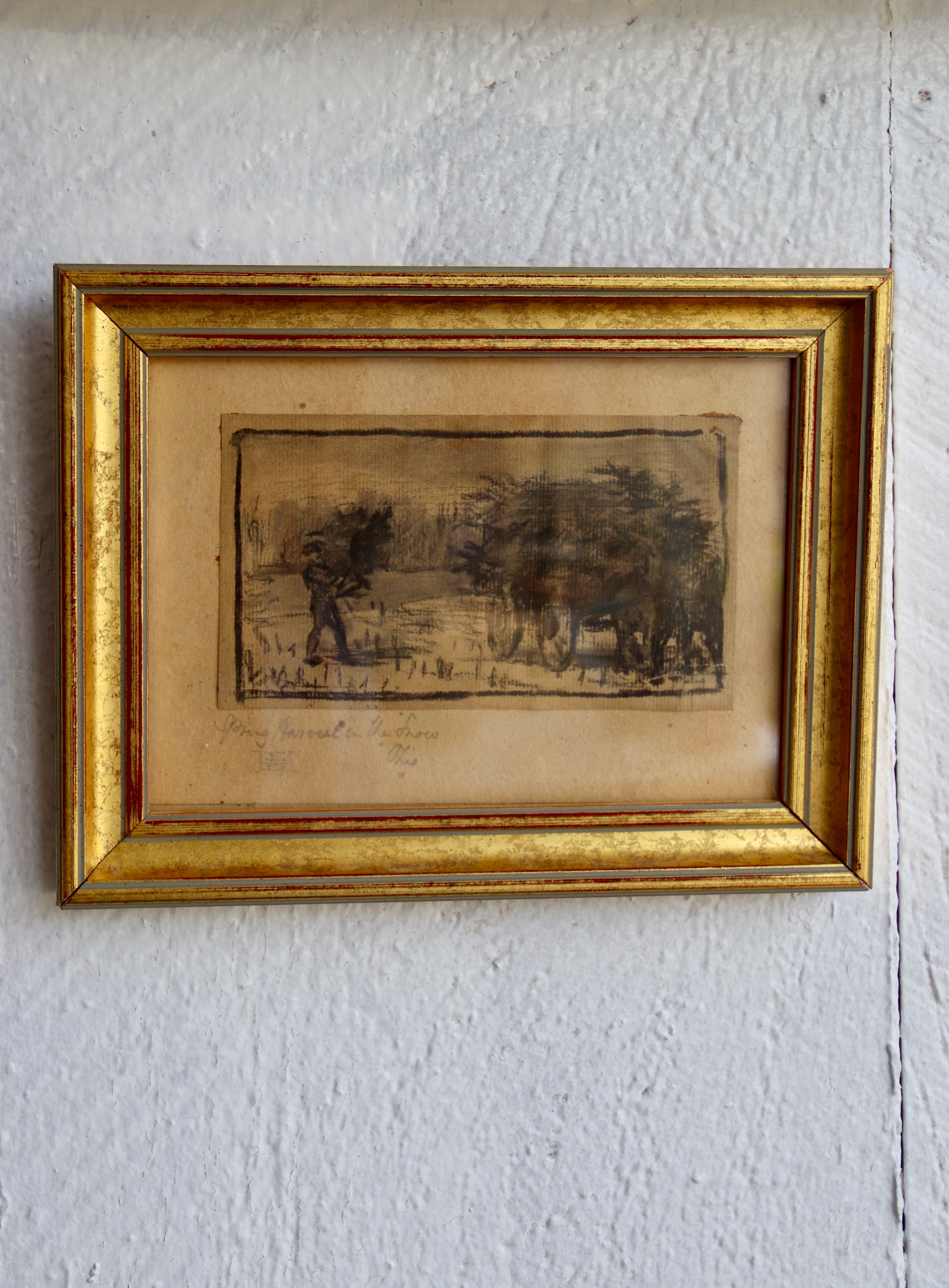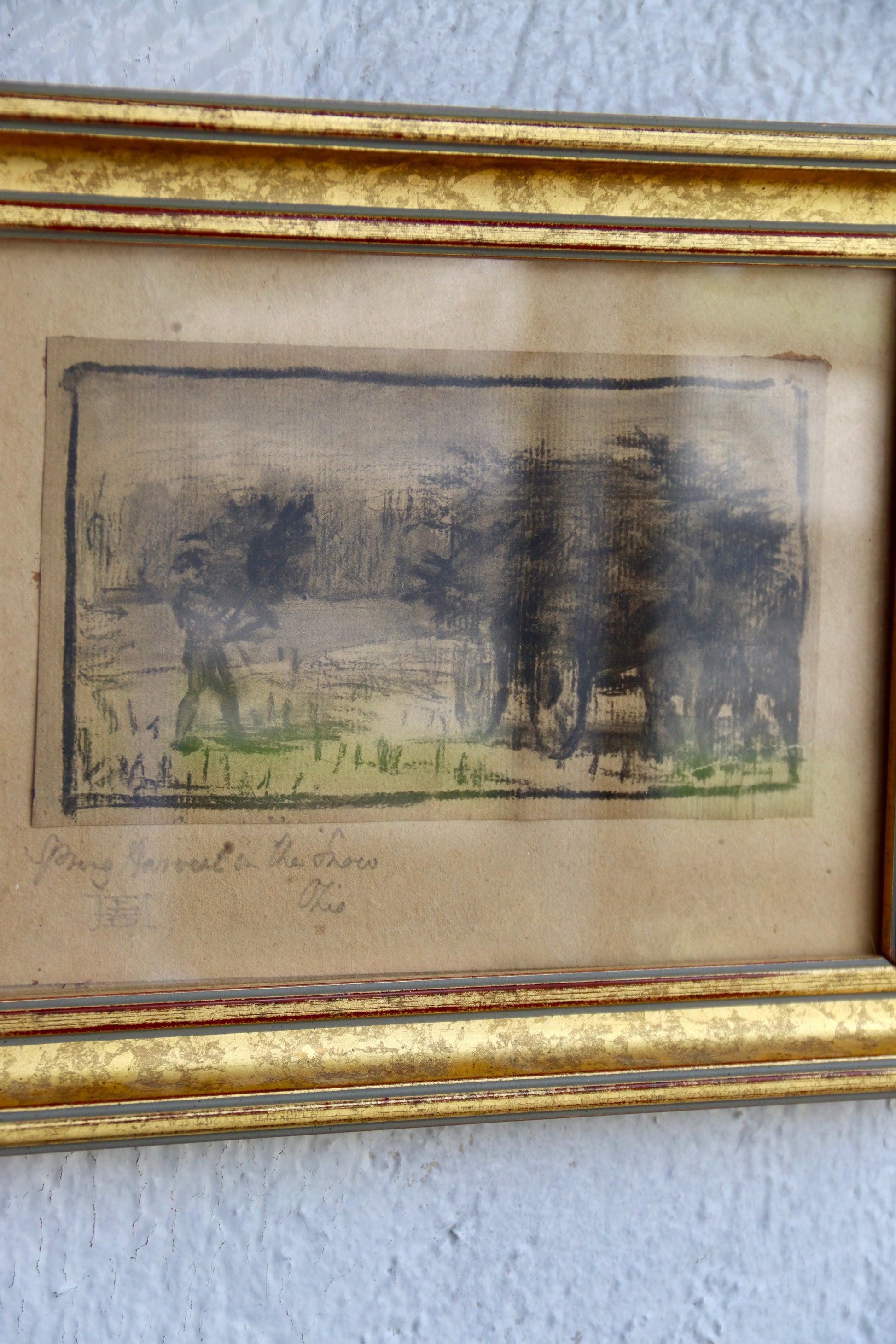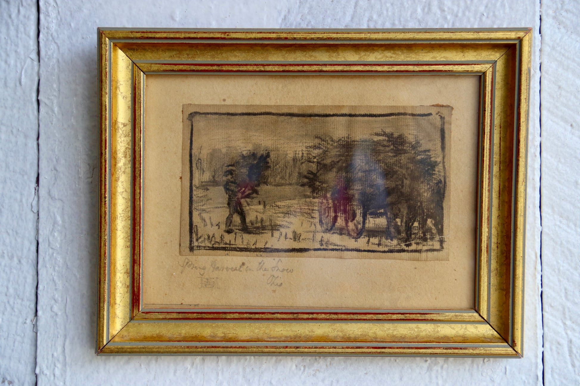 Ellen Day Hale (American, 1855-1940), charcoal drawing, Spring Harvest in the Snow Ohio, signed with artist's EDH monogram and titled on the mount, 5 1/4" x 7 5/8" (with frame 7 3/8" x 9 3/4")