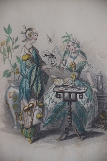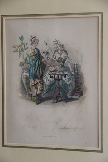 Vintage Framed Print "Tea & Coffee" with Hand Drawn Matte