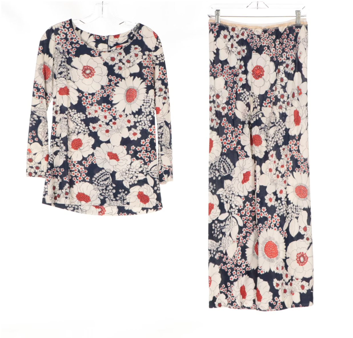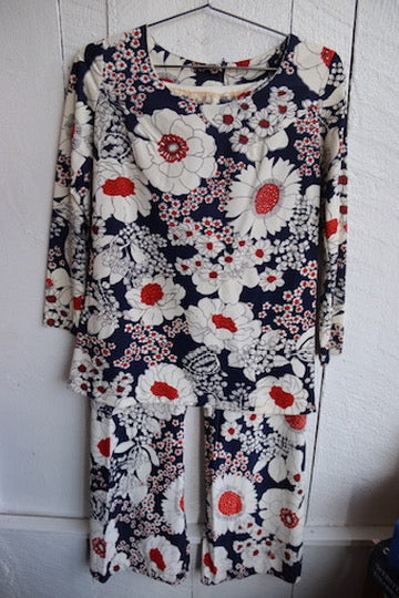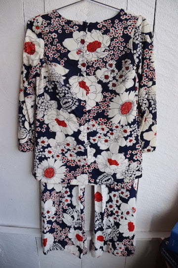 Vintage 70s Floral Pattern Top and Pants Set
