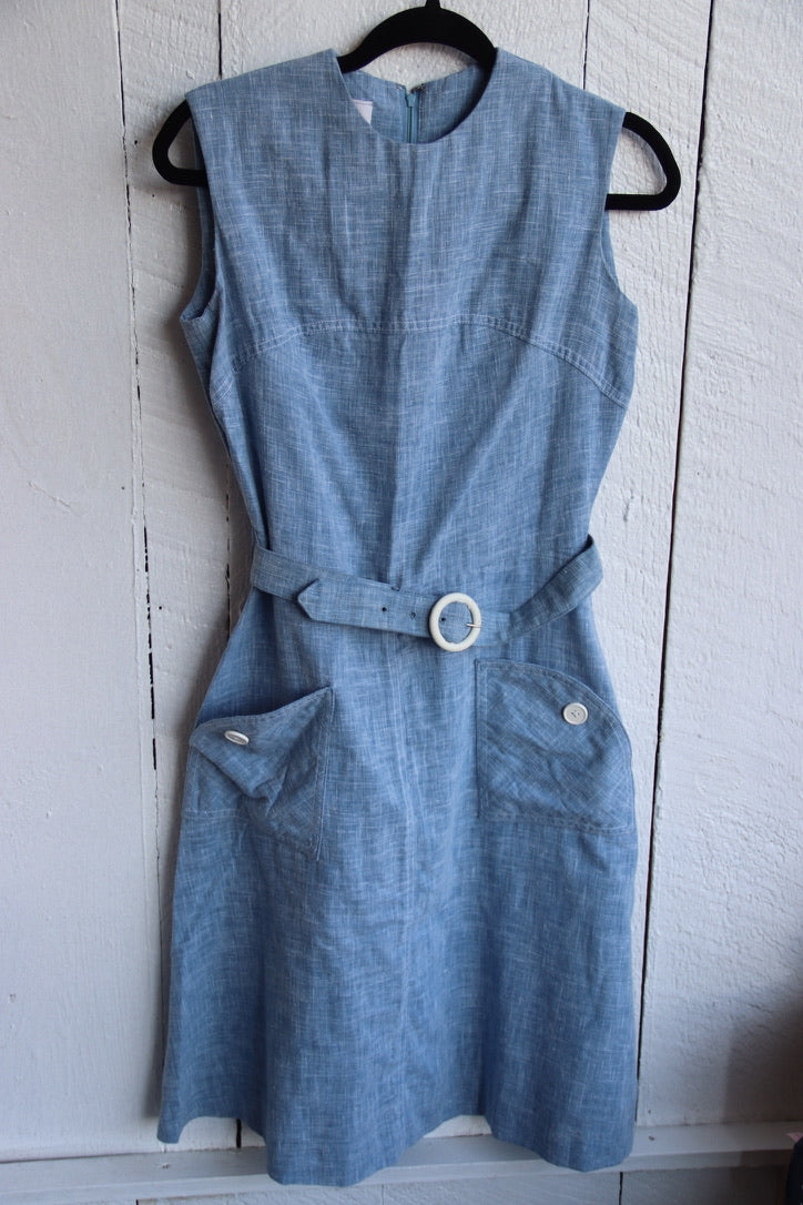 Vintage 60s Miss Donna Blue Belted Dress